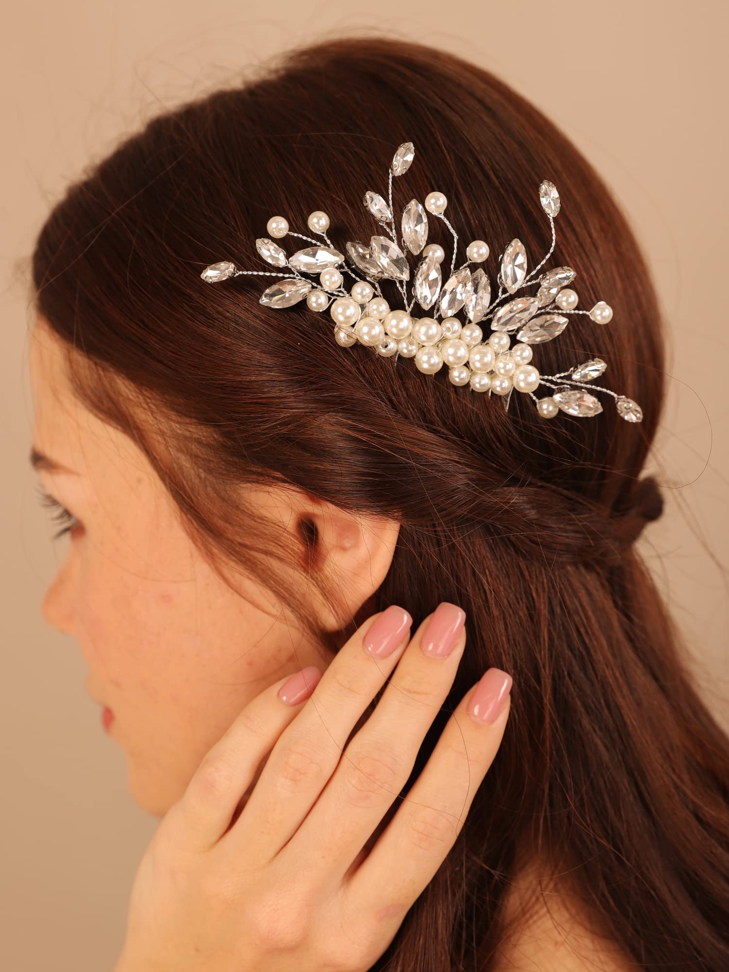 Deniferymakeup Bohemia Vintage Pearl Hair Comb Pearl Hair Accessory Bridal Crystal Headpiece for Wedding Women and Girls (Silver)