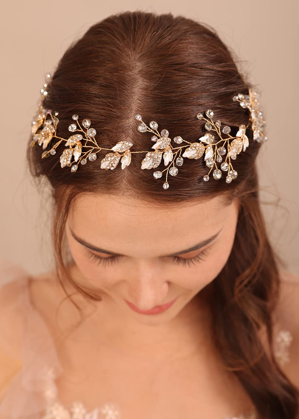 Deniferymakeup Gold Leaf Bride Wedding Hair Vine Crystal Bridal Hair Accessories Rhinestone Wedding Headpiece for Women and Girls