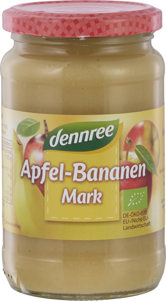 Taste: Storage and Use: Once opened, keep refrigerated and use within one day. Finish: Organic apple and banana paste offers pure pleasure. Dennree apple and banana paste is gently made from organic apples and bananas. Enjoy the fruity and sweet taste. EU Organic Certification INGREDIENTS Apples 75 , Banana Puree 25