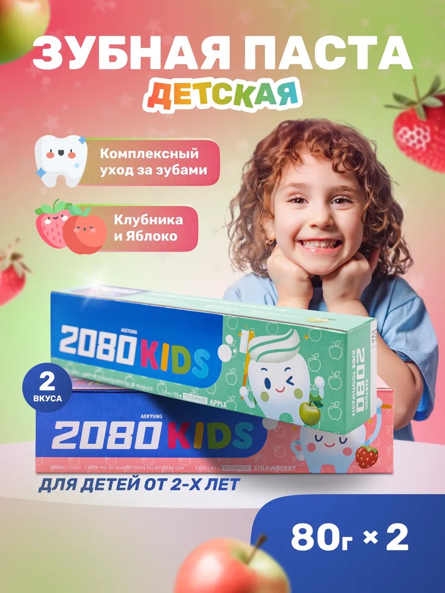 Dental clinic 2080 Набор Детская зубная паста Клубника и Яблоко 80 г 2шт