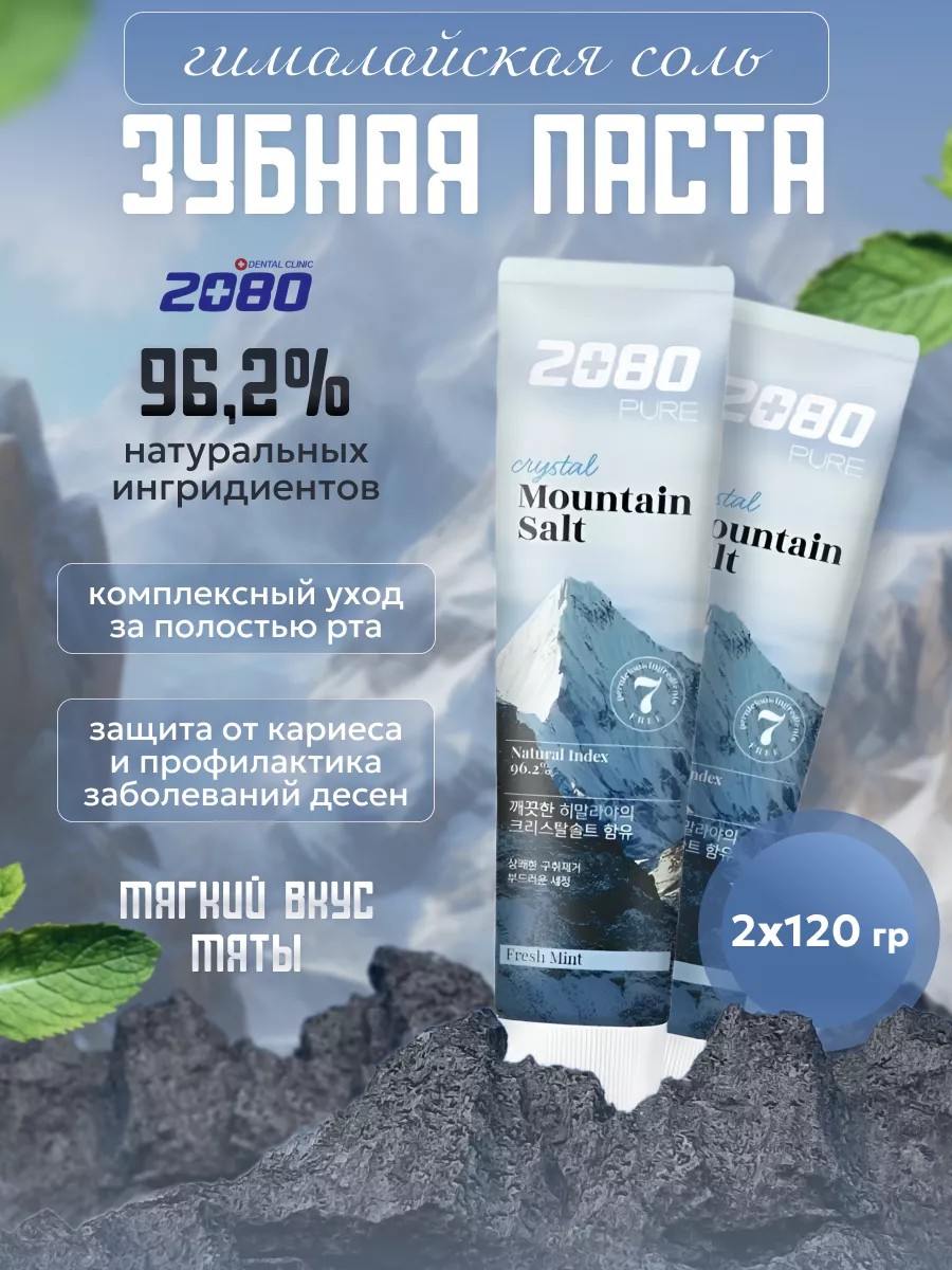 Корейская зубная паста с фтором Dental Clinic 2080 Гималайская соль предлагает комплексный уход за полостью рта, гарантируя свежесть дыхания, защиту от кариеса и профилактику заболеваний десен. Она имеет приятный мягкий мятный вкус.