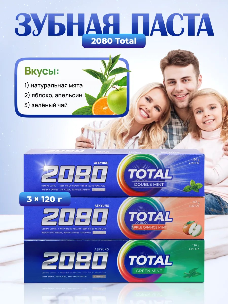 Korean fluoride toothpastes Dental Clinic 2080 "Natural Mint," "Vitamin Care," and "Green Tea" are an ideal choice for the whole family, as they provide comprehensive dental care, protection against cavities, periodontal disease prevention, and pleasant breath.