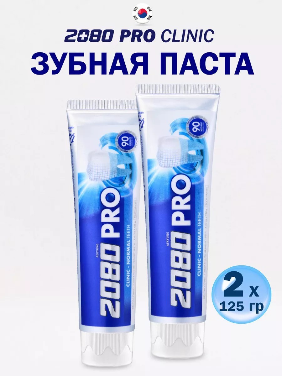 Dental Clinic 2080 Pro Clinic Anti-Caries Toothpaste Set: Professional protection for perfect oral hygiene. This gel toothpaste with a medium abrasiveness rating of RDA-90 provides comprehensive oral care. Without damaging tooth enamel, this Korean toothpaste gently cleans teeth from plaque and food debris, even when wearing braces, and prevents tartar buildup. A complex of amino acids and vitamins relieves gum inflammation and tooth sensitivity, prevents periodontal disease, gingivitis, and bleeding. Fluoride strengthens tooth enamel and protects against demineralization, prevents cavities and treats them at the white spot stage, and neutralizes bacteria that cause bad breath. This comprehensive whitening toothpaste provides a feeling of comfort, freshens breath, and improves the aesthetics of your smile. The paste has a mild, refreshing taste. Fluoride content is 0.1%. The formula is free of hazardous ingredients. Use with Korean toothbrushes Dental Clinic2080.