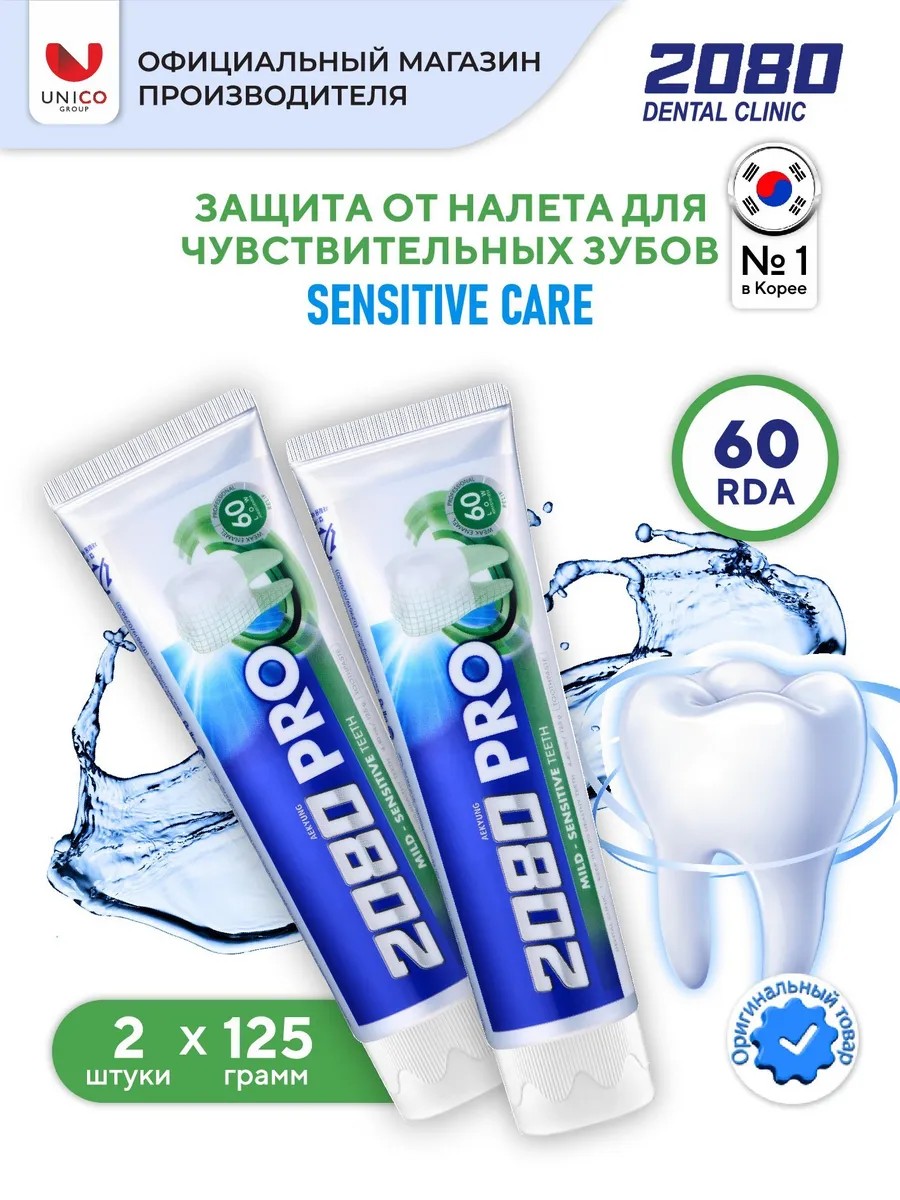 Set: Dental Clinic 2080 Pro Mild Toothpaste for Sensitive Teeth and Gums. Gentle protection for ideal oral hygiene. Thanks to its low abrasiveness (RDA-60), this gel toothpaste provides gentle and effective oral care. Without damaging tooth enamel, this Korean toothpaste gently cleans teeth from plaque and food debris, even when wearing braces, and prevents tartar buildup. A complex of amino acids and vitamins relieves tooth and gum sensitivity, inflammation, and bleeding. Fluoride strengthens tooth enamel, protects against demineralization, prevents cavities and treats them at the white spot stage, and neutralizes bacteria that cause bad breath. This comprehensive whitening toothpaste provides a feeling of comfort, freshens breath, and improves the aesthetics of your smile. The toothpaste has a soft rose scent and a convenient tube closure. Fluoride content is 0.1%. The formula is free of hazardous ingredients. Use with Korean toothbrushes Dental Clinic2080.