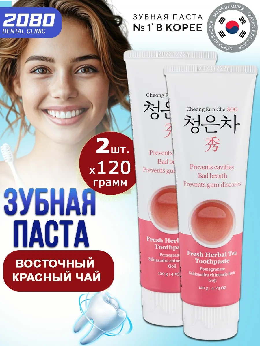 Dental clinic 2080 Зубная паста Восточный красный чай 120г, 2шт