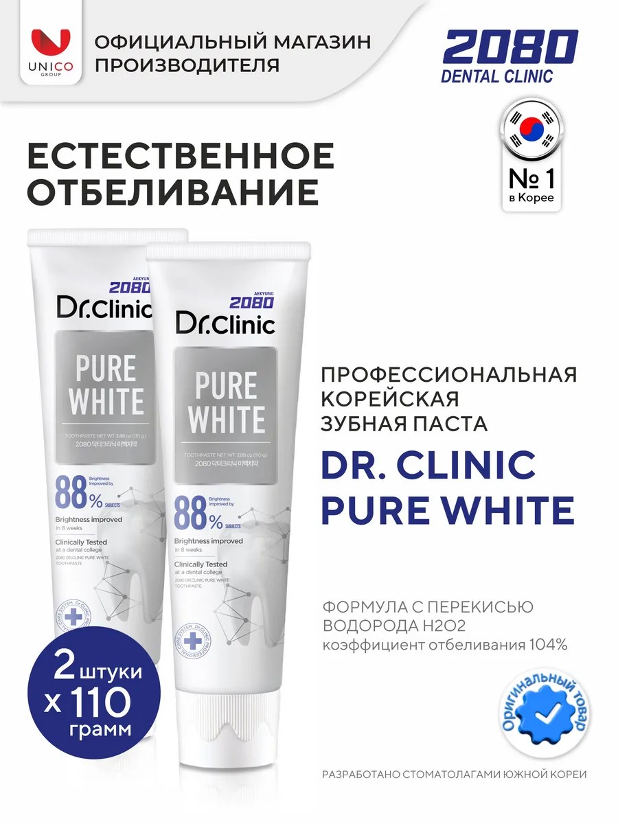 Набор зубная паста отбеливающая Зубная паста 2080 Доктор Клиник ЕСТЕСТВЕННОЕ ОТБЕЛИВАНИЕ 110г (набор 2 шт х 110 г) с кислородным отбеливанием