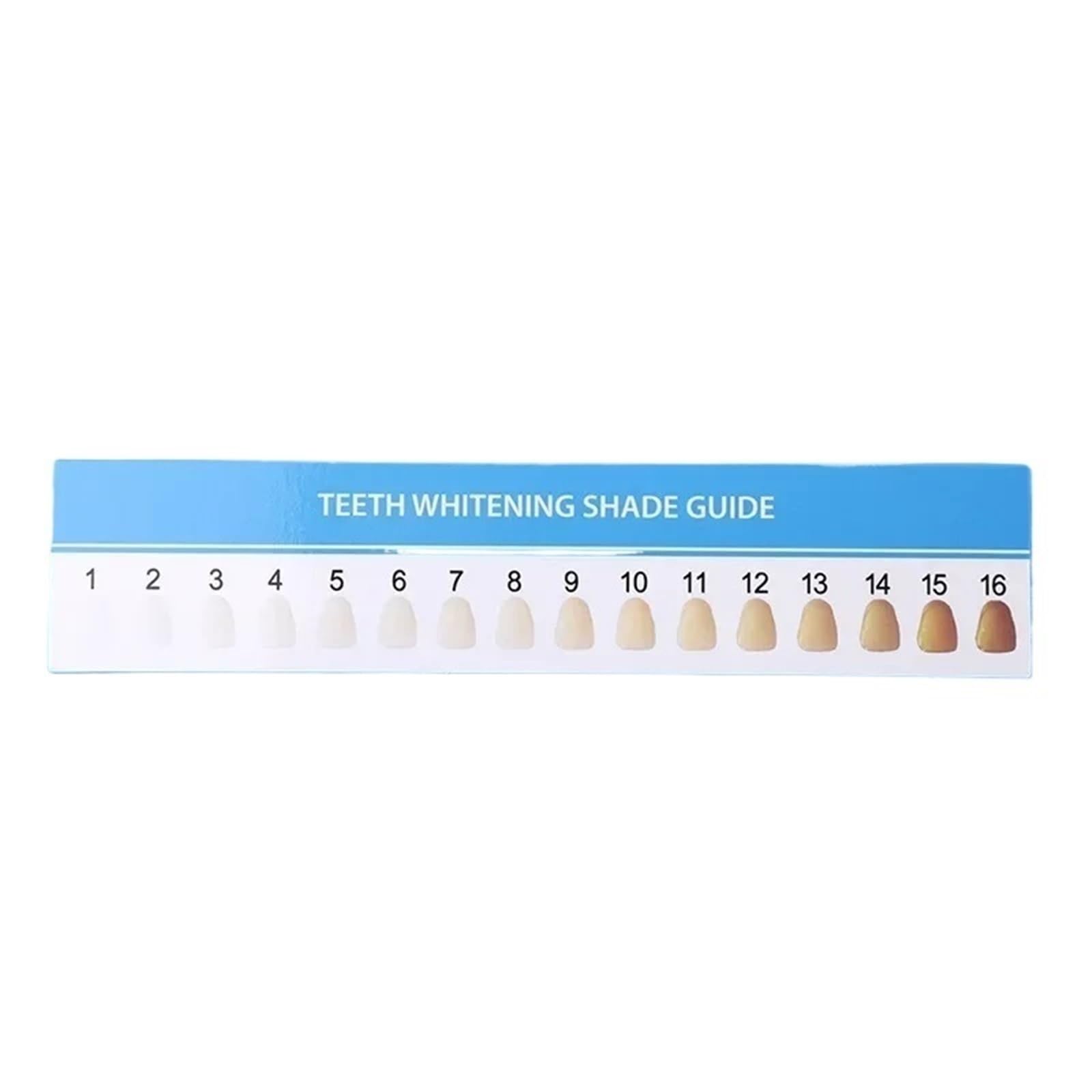 3.Shows your patients how much their teeth whitening treatments have helpe. 2.Convenient and easy to use, 16 different shades. 1.Easy to use paper guide can be disposed of after use.