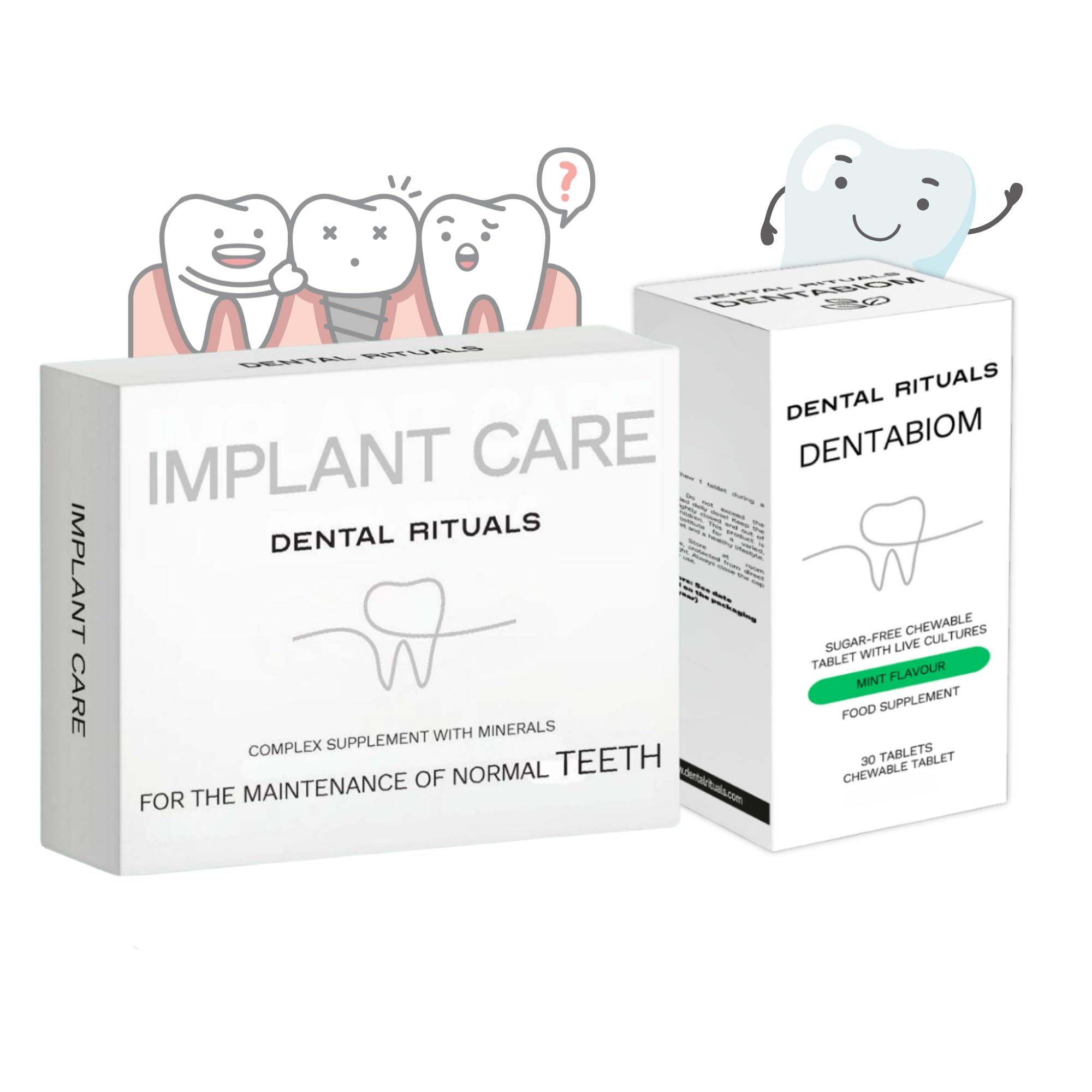 Dental Rituals Oral Wellness Bundle Implant Care Mineral Complex + Dentabiom Mint Probiotic Chewable Tablets Sugar-Free 60 Count Total (Adult Oral Health Set)