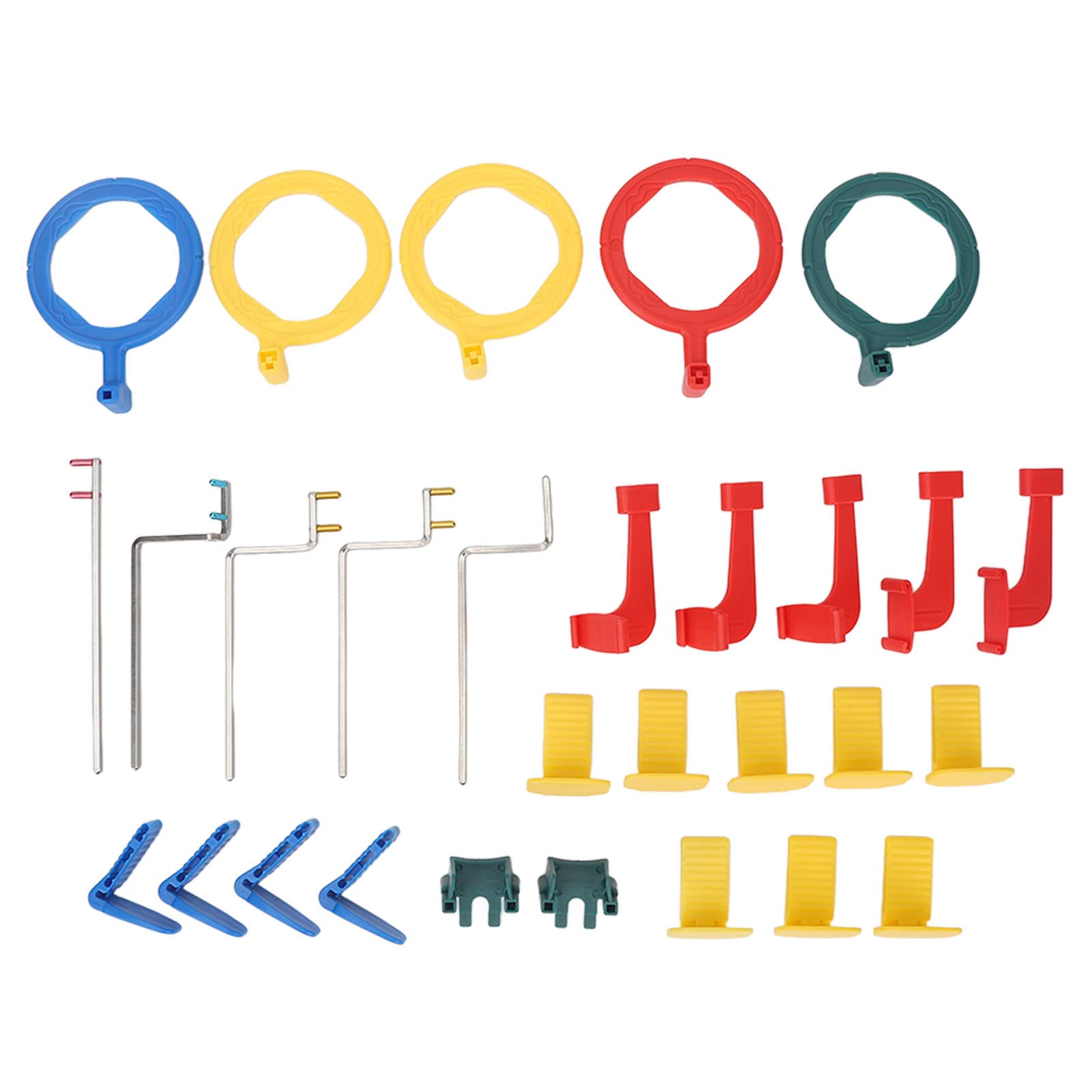 Specification: Article type: Dental X-ray film position set Material: stainless steel, PP Product use: is used for teeth when taking X -ray films for auxiliary positioning, suitable for complete teeth in photo positioning support Package list: 5 x target ring 5 x blinker 19 x bite block 1 x operating instructions