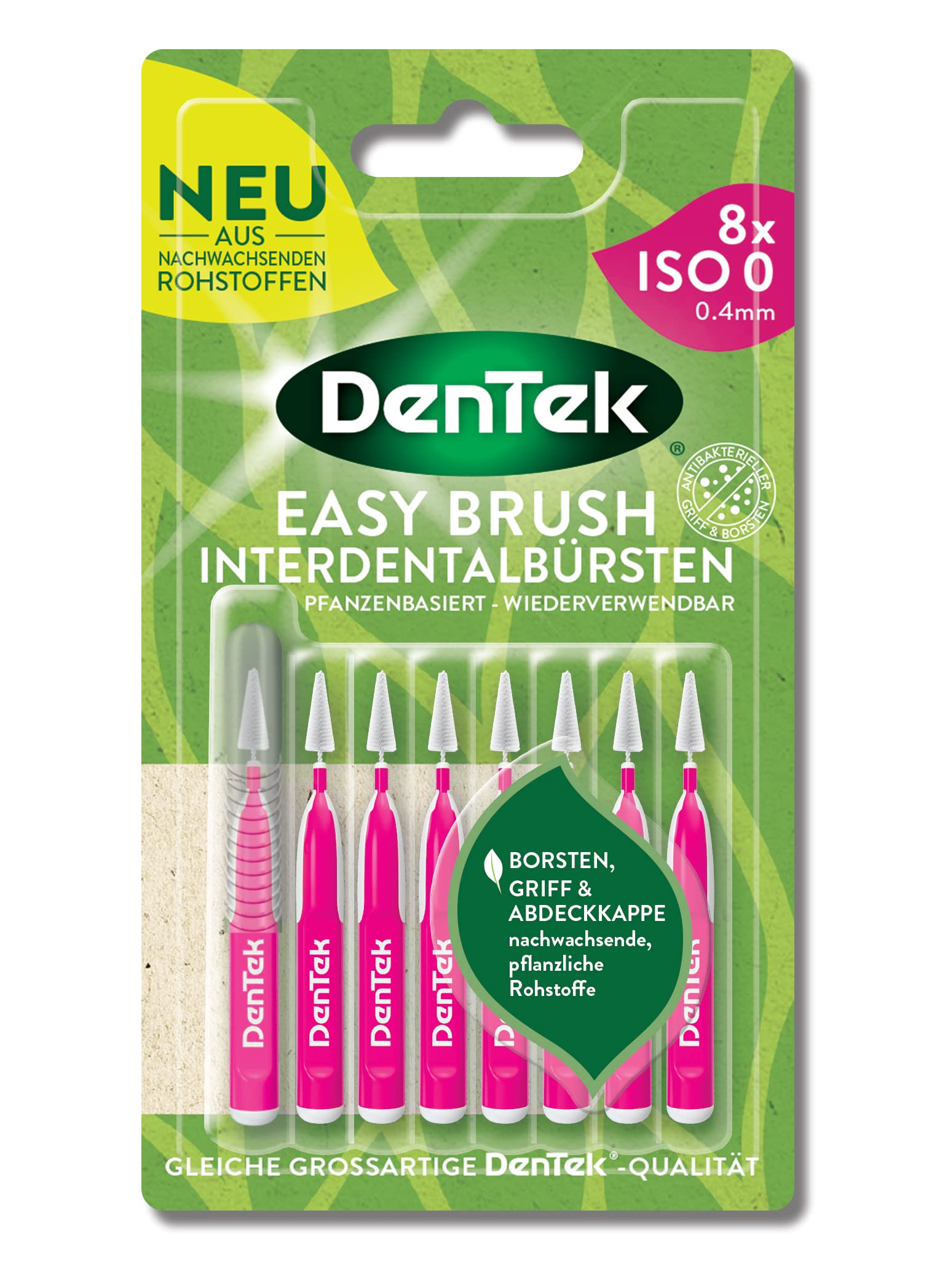 The metal -free Dentek Eco Dentek Eco Comfort Picks have soft, flexible rubber bristles that conveniently clean the interdental spaces and gently massage the gums.They help you to remove the leftovers and plaque from the interdental spaces and to clean bridges, bridges, crowns, implants and other dental devices.With a handle made of 100 recycled plastic, which reduces the demand for fossil fuels and reduces carbon emissions.With a handy hygienic travel case made of recycled materials.Dentists recommend using interdental cleaning products such as this daily to protect their oral health. Instructions 1. Insert your teeth, interdental spaces or braces.2. with a gentle back and forth movement remove plaque and food residues.3. Rinse out use.4. Exchange if the bristles are worn out.recyclable packaging made of FSC-certified cardboard and 50 recycled PET.Coated with fluoride and with a mint taste for fresh breath.Also ideal for bridges or bridges.Contains 1 x antimicrobial brush caps made of vegetable materials to keep the brush clean between the applications.Ideal when traveling.The Dentek Eco Friendly Easy Brush ISO 0 offers a quick and easy way to clean the hard -to -reach and narrow areas that a toothbrush cannot reach!For teeth and gums pleasant comfort wire that bends to reach difficult areas of your mouth.They help you to remove the leftovers and plaque from the interdental spaces and to clean bridges, bridges, crowns, implants and other dental devices.Dentek eco easybrush interdental brush ISO 2 plant-based interdental brushes provide as thorough cleaning as the original, but thanks to the use of more sustainable materials, this dental stick is better for the environment.The handle consists of bio -based plastic (made from a raw material made of sugar cane plants), while the bristles are made from castor plants.Die metallfreien DenTek Eco Dentek Eco Comfort Picks verfügen über weiche, flexible Gummiborsten die bequem die Zahnzwischenräume reinigen und das Zahnfleisch sanft massieren. Sie helfen Ihnen, Speisereste und Plaque aus den Zahnzwischenräumen zu entfernen und Zahnspangen, Brücken, Kronen, Implantate und andere Dentalvorrichtungen zu reinigen. Mit einem Griff aus 100 recycltem Kunststoff was die Nachfrage nach fossilen Brennstoffen verringert und die Kohlenstoffemissionen reduziert. Mit handlichem hygienischem Reiseetui aus recycelten Materialien. Zahnärzte empfehlen, Interdentalreinigungsprodukte wie diese täglich zu verwenden, um Ihre Mundgesundheit zu schützen. GEBRAUCHSANWEISUNG 1.Zwischen die Zähne, Zahnzwischenräume oder Zahnspangen einführen. 2.Mit einer sanften Hin- und Herbewegung Plaque und Speisereste entfernen. 3.Nach Gebrauch ausspülen. 4.Auswechseln, wenn die Borsten abgenutzt sind.Recycelbare Verpackungen aus FSC-zertifiziertem Karton und 50 recyceltem PET. Beschichtet mit Fluorid und mit Minzgeschmack für einen frischen Atem. Bestens geeignet auch für Brücken oder Zahnspangen. Enthält 1 x antimikrobielle Bürstenkappen aus pflanzlichen Materialien, um die Bürste zwischen den Anwendungen sauber zu halten. Ideal auf Reisen. Die DenTek Eco Friendly Easy Brush ISO 0 bietet eine schnelle und einfache Möglichkeit, die schwer zugänglichen und engen Stellen zu reinigen, die eine Zahnbürste nicht erreichen kann! Für Zähne und Zahnfleisch angenehmer Komfortdraht, der sich biegt, um schwer zugängliche Bereiche Ihres Mundes zu erreichen. Sie helfen Ihnen, Speisereste und Plaque aus den Zahnzwischenräumen zu entfernen und Zahnspangen, Brücken, Kronen, Implantate und andere Dentalvorrichtungen zu reinigen. DenTek Eco Easybrush Interdentalbürste ISO 2 pflanzenbasierte Interdentalbürsten liefern eine ebenso gründliche Reinigung wie das Original, aber dank der Verwendung von nachhaltigeren Materialien ist dieser Zahnseide-Stick besser für die Umwelt. Der Griff besteht aus biobasiertem Kunststoff (hergestellt aus einem Rohmaterial aus Zuckerrohrpflanzen), während die Borsten aus Rizinuspflanzen hergestellt werden.DenTek Eco Easybrush Interdentalbürste ISO 0 8 Stk. Pflanzenbasiert- 0,4 mm mega fein für sehr enge Zahnzwischenräume, mit Minzgeschmack hygienischer Schutzkappe - Wiederverwendbar