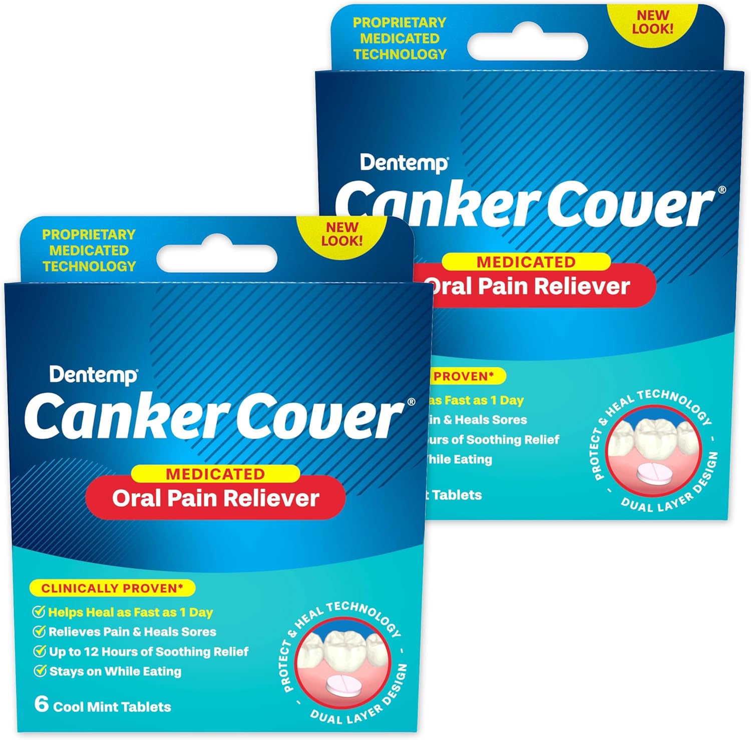 Dentemp Canker Sore Medicine 2pk Canker Cover - Oral Pain Reliever (12 Count) - Treatment to Relieve Canker Pain, Mouth Sores & Mouth Irritation - Fast Acting Canker Sore Relief Tablets for Adults