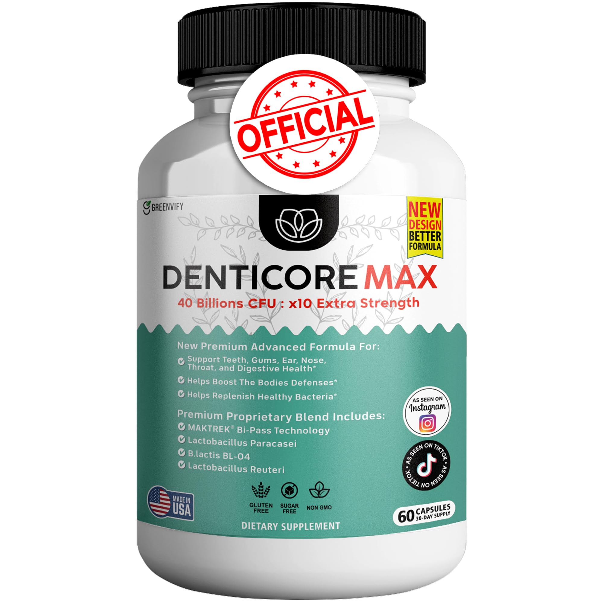 DentiCore Max for Gums and Teeth Health - 40 Billion CFU Advanced Oral Probiotics, Fresh Breath Support - 60 Capsules, ProDentim for Gums and Teeth Supplement