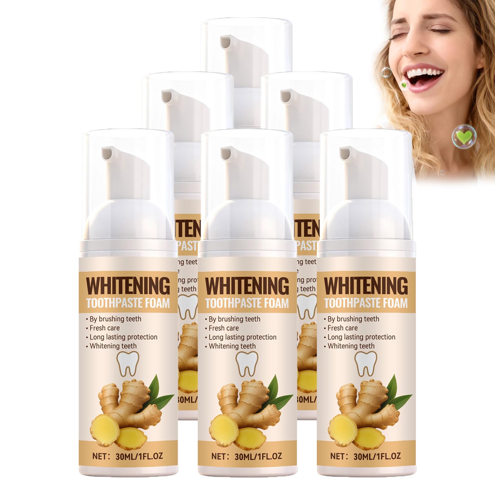 Dentifrice Moussant Au Gingembre Pour L'HygièNe Bucco-Dentaire Quotidienne, ArôMe Gingembre, Pour Une Haleine FraîChe Longue DuréE, Mousse Dentifrice, Soin Nettoyant En Profondeur (6 PCS)