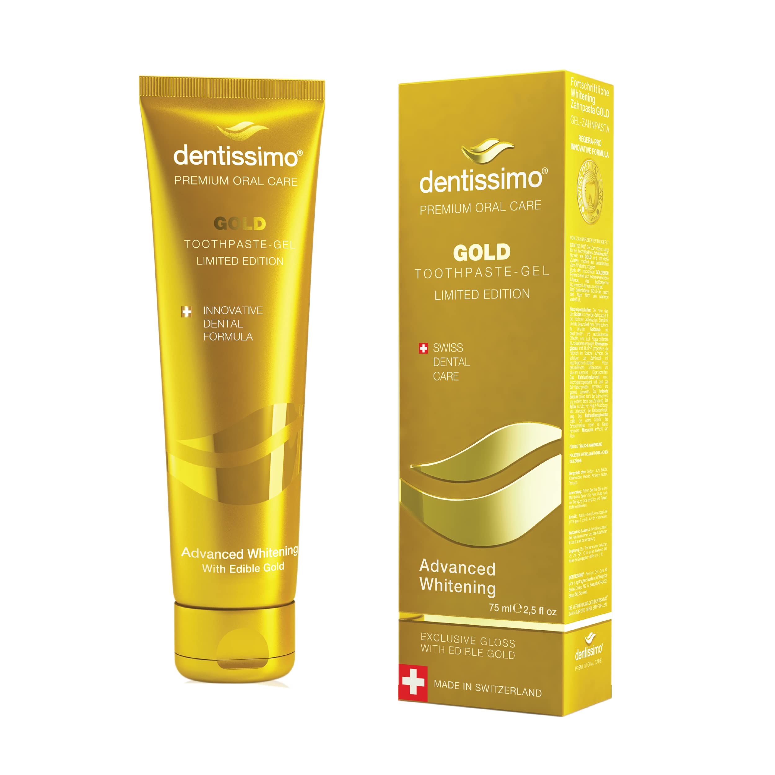 Dentissimo Gold Advanced Whitening Gel Toothpaste with Fluoride Premium Swiss Oral Care 2.5 Fluid Ounces Made in Italy