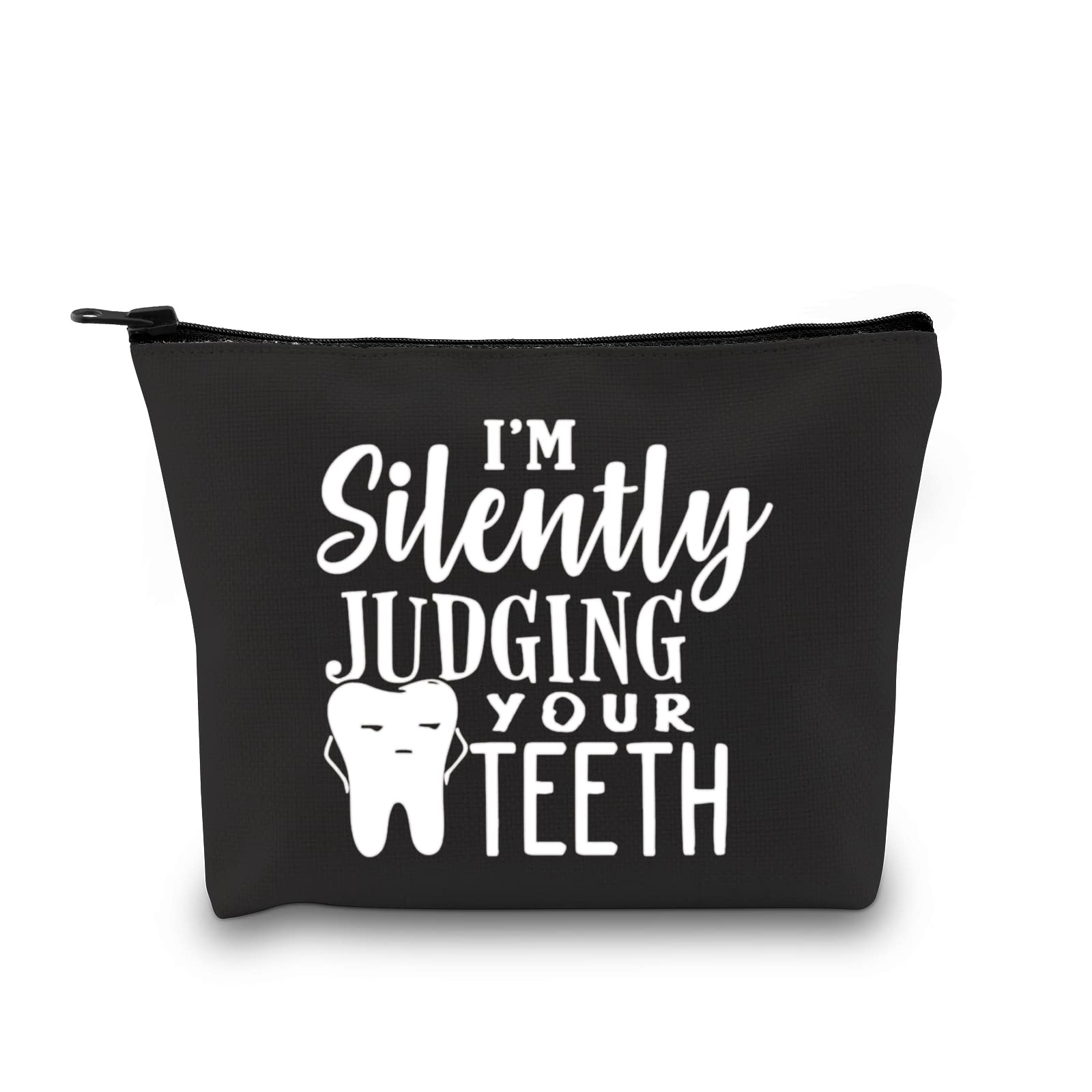 Material: canvas with a metal zip. Dimensions (W x H x D): 23 x 17 x 5 cm. Image printing: 3D printing Characteristics: 1. Exquisite design 2. Easy to pack and transport. 3. Diverse uses: 4. Great gift. If you like this unique cosmetic bag, click on the shopping cart immediately.Believe me, you will definitely be put on deep!?Broadened? It is not only a simple zip pocket, but also a functional make-up bag, cosmetic bag, travel bag, it can be used as a shopping bag, toilet article bags or other small parts and serves as an everyday bag for your headphones, cell phone, Cards, sunglasses and keys.Ideal for travel, vacation, business trip, gym, camping, bathroom organization and outdoor activities.?Fashionable design? Our cosmetic bag has 3D printing, exquisite patterns are printed on it to make the cosmetics look more interesting and show your personality.In addition, the font gives a touch of flair.It is really a special and attractive gift for her friend, mother, aunt, daughter, sister, teacher, nurse, doctor, wife, family, etc. Ideal for Mother's Day, Christmas, Thanksgiving, Valentine's Day and more.?Long-lived material? Made of canvas with a metal zipper, soft and comfortable, resistant to dirt and abrasion, easy to clean.Light weight, very durable and easy to wear.?Perfect size? 24.6 x 17.3 cm (tips: manual measurement, permissible errors).The size is suitable for make-up and stationery.It is enough to wear daily cosmetic make-up tools such as lipstick, eyeshadow, liquid primer, men's shaving set, make-up brushes or other small objects.?Unique gift ideas words? I am silently judged my teeth. Material: Segeltuch mit Metallreißverschluss. Maße (B x H x T): 23 x 17 x 5 cm. Bilddruck: 3D-Druck Eigenschaften: 1. Exquisites Design 2. Einfach zu verpacken und zu transportieren. 3. Vielfältige Nutzungsmöglichkeiten: 4. Tolles Geschenk. Wenn Ihnen diese einzigartige Kosmetiktasche gefällt, klicken Sie sofort auf den Einkaufswagen. Glauben Sie mir, Sie werden definitiv tief angezogen sein!?Weit verbreitet? Es ist nicht nur eine einfache Reißverschlusstasche, sondern auch eine funktionale Make-up-Tasche, Kosmetiktasche, Reisetasche, sie kann als Einkaufstasche, Toilettenartikel Tasche oder andere Kleinteile verwendet werden und dient als alltägliche Tasche für Ihre Kopfhörer, Handy, Karten, Sonnenbrillen und Schlüssel. Ideal für Reisen, Urlaub, Geschäftsreise, Fitnessstudio, Camping, Badezimmer-Organisation und Outdoor-Aktivitäten. ?Modisches Design?Unsere Kosmetiktasche verfügt über einen 3D-Druck, exquisite Muster sind darauf gedruckt, um die Kosmetiktaschen interessanter aussehen zu lassen und Ihre Persönlichkeit zu zeigen. Zusätzlich verleiht die Schrift einen Hauch von Flair. Es ist wirklich ein besonderes und attraktives Geschenk für Ihre Freundin, Mutter, Tante, Tochter, Schwester, Lehrer, Krankenschwester, Arzt, Ehefrau, Familie usw. Ideal für Muttertag, Weihnachten, Erntedankfest, Valentinstag, Frauentag und mehr. ?Langlebiges Material? Hergestellt aus Segeltuch mit einem Metall-Reißverschluss, weich und bequem, resistent gegen Schmutz und Abrieb, leicht zu reinigen. Geringes Gewicht, sehr langlebig und leicht zu tragen. ?Perfekte Größe?24,6 x 17,3 cm (Tipps: manuelle Messung, zulässige Fehler). Die Größe ist geeignet für Make-up und Schreibwaren. Es ist genug, um tägliche Kosmetik-Make-up-Werkzeuge wie Lippenstift, Lidschatten, flüssige Grundierung, Herrenrasierset, Make-up-Pinsel oder andere kleine Gegenstände zu tragen. ?Einzigartige Geschenkideen Worte? Ich bin lautlos die Zähne beurteilt.Zahnarzt-Geschenk, Zahnhygieniker, Geschenk, Zahnarzt-Assistent, Geschenk, I'm Silently Judging Your Teeth, Zahnabschluss, Reißverschlussbeutel, Judging Your Teeth Black EU, M