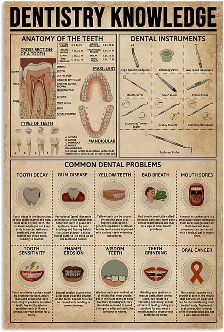 Dentistry Knowledge Metal Tin Signs Vintage Common Dental Problems Poster Dental Hospital Clinic Home Wall Decor 12x16 inch