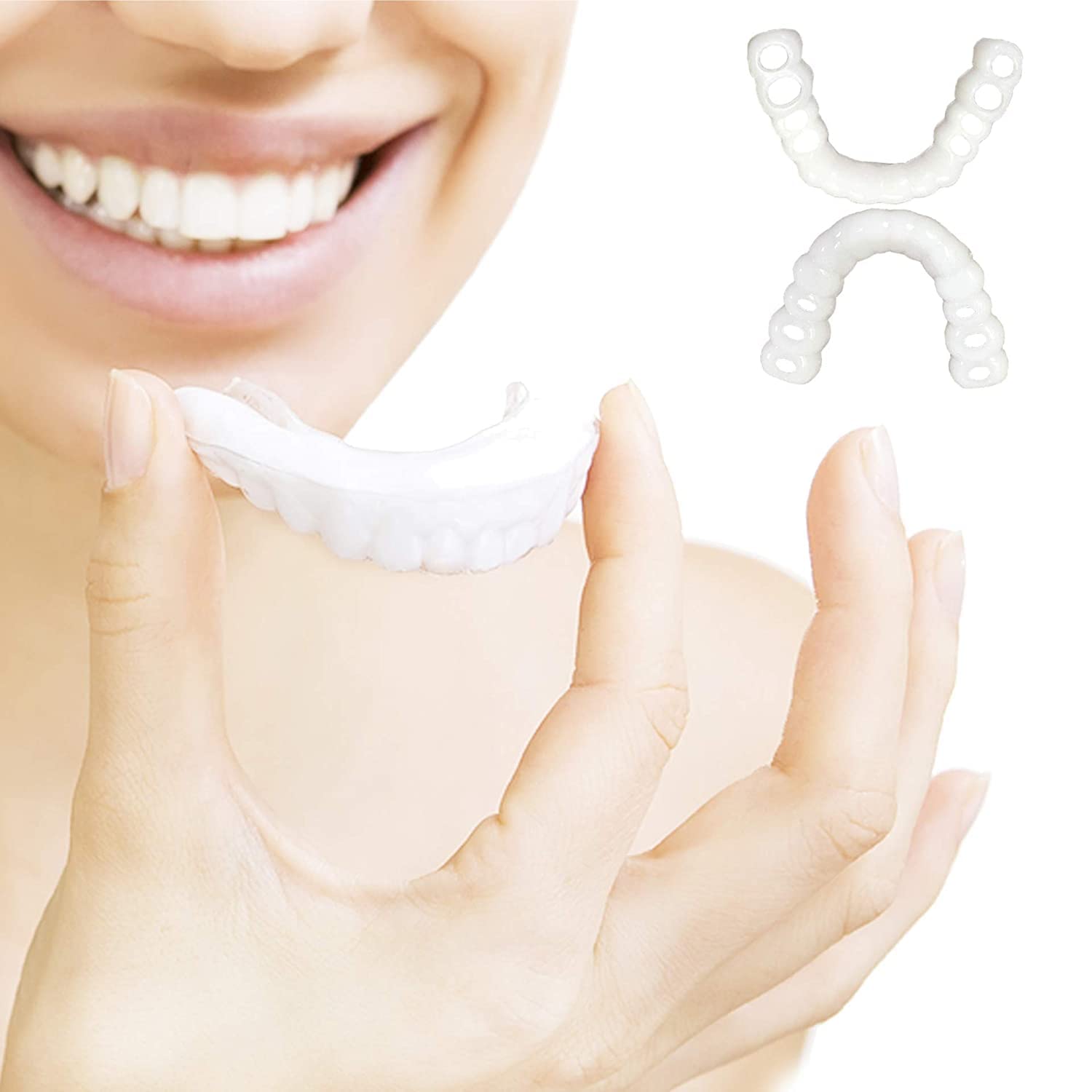 Convenient To Use: Easy for you to clean, you can store them into the box after using.Convenient for you to carry them anywhere you want, saving you much time and energy. Suitable for Most Occasions:Whether it's a date, a job interview or a party,you can use this teeth denture to help you regain confidence and increase your charm. Can be used just after a simple cleaning,without waiting for a long time.You'll get a natural and confident smile right away. The full set is an excellent tool . New upgrade,made of food grade silicone, non-toxic and harmless, can give you the freedom to smile and drink without making you feel any discomfort, reusable temporary smile device. Improving your smile with a realistic solution, with a realistic look and feel.
