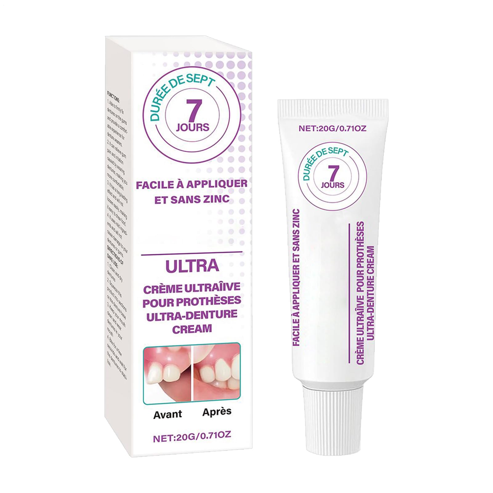 Designed for comfort and confidence, this 20g denture adhesive delivers a strong hold and all-day wear. Gentle on the teeth, it suits any mouth shape and is suitable for both beginners and long-term wearers among adults, seniors, men, and women. Use it during daily routines at home, while commuting, traveling, or engaging in activities such as dating and business interactions. Specifications: Product name: Denture Adhesive Net weight: about 20g Product size: about 3x12.6cm 1.18x4.96 inches Packing List: 1 pieces denture adhesive Note: Due to different lighting and screen settings, the item color may be slightly different from the picture. Due to different manual measurements, please allow a 1-2cm difference in size. Directions: Clean and dry your dentures Squeeze the adhesive cream into various areas of the denture base Maintain mouth hygiene while wearing your dentures Bite down for half a minute to allow the denture to settle.Simplified Daily Use: Experience tidy application with the easy-to-apply texture of this denture adhesi ve, providing quick even coverage and precision dosage control to simplify your labour-saving daily routine via intuitive user-friendly packaging. Comfortable Everyday Solution: Effortless application provides convenience while being gentle and safe, suitable for all denture types and suitable for sensitive users seeking comfort. Comfortable All-Day Hold: Engineered with balanced viscosity for a efficient denture bond that stays dependable throughout the day, allowing for easy removal and less frequent reapplication. Cushioned Stability Layer: Take advantage of even weight dispersion across dentures, with add ed cushioning to reduce mouth discomfort, and provide teeth remain comfortable during extended periods of use. Long-Lasting Denture Comfort: Experience secure denture placement, supported by nced adhesion, that prevents shifting and maintains a firm grip for extended periods.Dentures Adhesive Cream - 1.18x4.96 Inches Teeth Glue For Denture 20g All-Day Wear Long-Lasting Adhesion Paste For Any Mouth Shape Women Men Adults Beginners Designed for comfort and confidence, this 20g denture adhesive delivers a strong hold and all-day wear. Gentle on the teeth, it suits any mouth shape and is suitable for both beginners and long-term wearers among adults, seniors, men, and women. Use it during daily routines at home, while commuting, traveling, or engaging in activities such as dating and business interactions. Specifications: Product name: Denture Adhesive Net weight: about 20g Product size: about 3x12.6cm 1.18x4.96 inches Packing List: 1 pieces denture adhesive Note: Due to different lighting and screen settings, the item color may be slightly different from the picture. Due to different manual measurements, please allow a 1-2cm difference in size. Directions: Clean and dry your dentures Squeeze the adhesive cream into various areas of the denture base Maintain mouth hygiene while wearing your dentures Bite down for half a minute to allow the denture to settle.Simplified Daily Use: Experience tidy application with the easy-to-apply texture of this denture adhesi ve, providing quick even coverage and precision dosage control to simplify your labour-saving daily routine via intuitive user-friendly packaging. Comfortable Everyday Solution: Effortless application provides convenience while being gentle and safe, suitable for all denture types and suitable for sensitive users seeking comfort. Comfortable All-Day Hold: Engineered with balanced viscosity for a efficient denture bond that stays dependable throughout the day, allowing for easy removal and less frequent reapplication. Cushioned Stability Layer: Take advantage of even weight dispersion across dentures, with add ed cushioning to reduce mouth discomfort, and provide teeth remain comfortable during extended periods of use. Long-Lasting Denture Comfort: Experience secure denture placement, supported by nced adhesion, that prevents shifting and maintains a firm grip for extended periods.