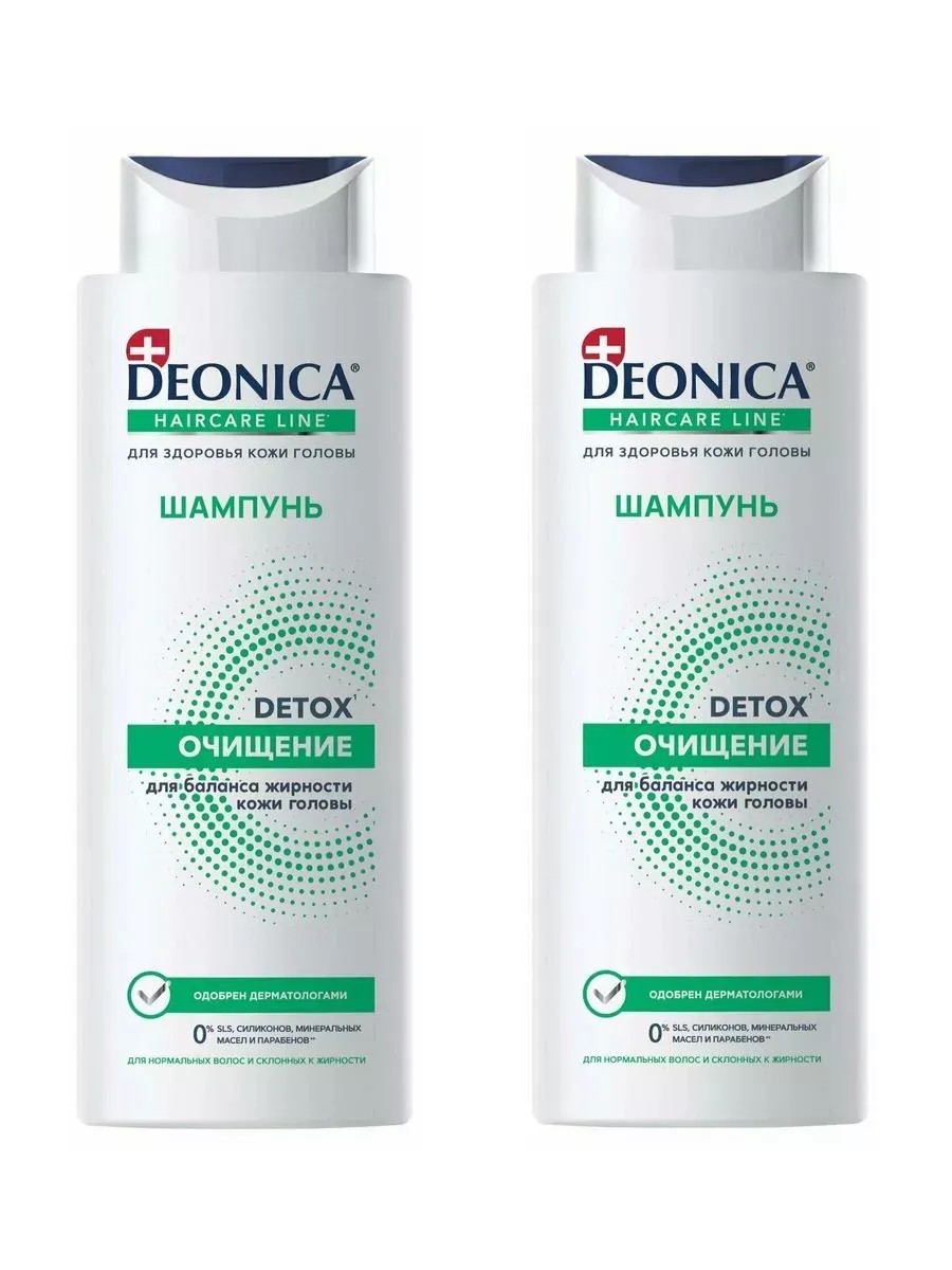 Set of 2. Deonica Detox Cleansing Shampoo, 380 ml. Detox Care Shampoo is designed for deep scalp cleansing. Ideal for urban conditions, stress, and frequent use of styling products. This product penetrates deep into the scalp, drawing out impurities and removing them with lather. As a result, scalp oiliness is normalized and hair requires less frequent washing.