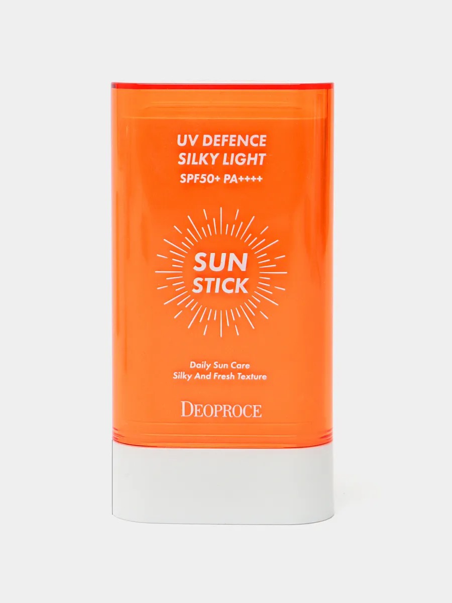 Солнцезащитный стик для лица Deoproce UV Defence Silky Light Sun Stick Cream SPF50+ PA++++ объёмом 19 г — средство для ежедневной защиты кожи от ультрафиолета.