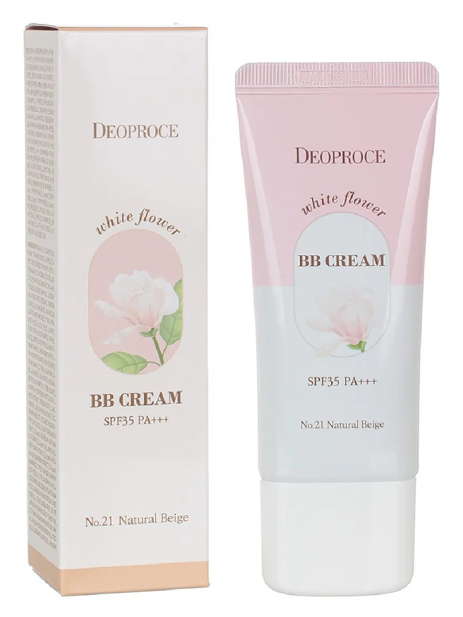 Deoproce BB Cream for Face with Floral Complex 21 Tones, 30g. BB cream with white flower extract perfectly corrects skin imperfections with white flower extract (lily, lotus, peony). White flower extract has a pronounced softening and moisturizing effect, soothes and refreshes the skin, and improves microcirculation. High protection SPF 35+ PA++ prevents the appearance of freckles. How to use: Apply BB cream with a sponge or fingertips.
