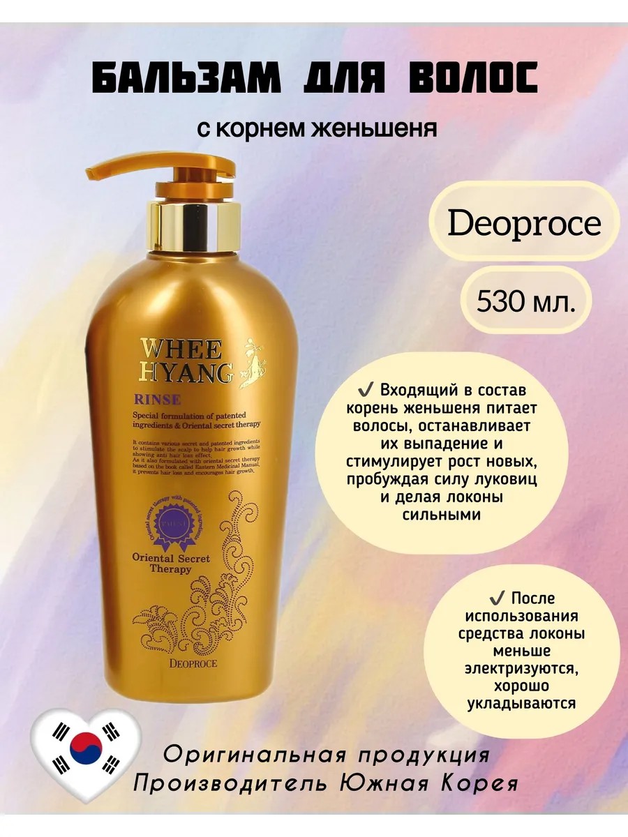 Бальзам с корнем женьшеня Whee Hyang Rinse от Deoproce оказывает на волосы комплексное воздействие.