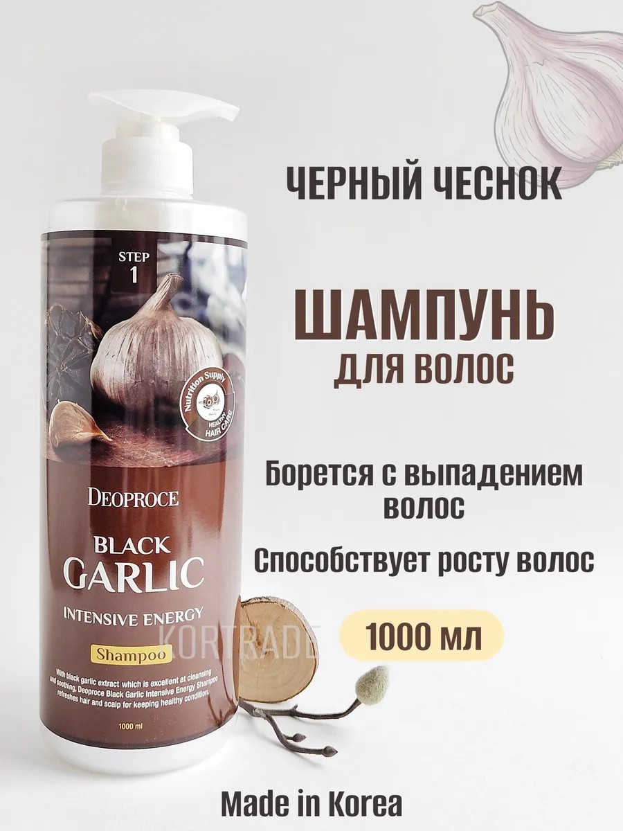 Deoproce Black Garlic Intensive Energy Shampoo with garlic extract from the Korean brand provides high-quality cleansing, prevents hair loss, stimulates hair growth, and restores and strengthens hair.