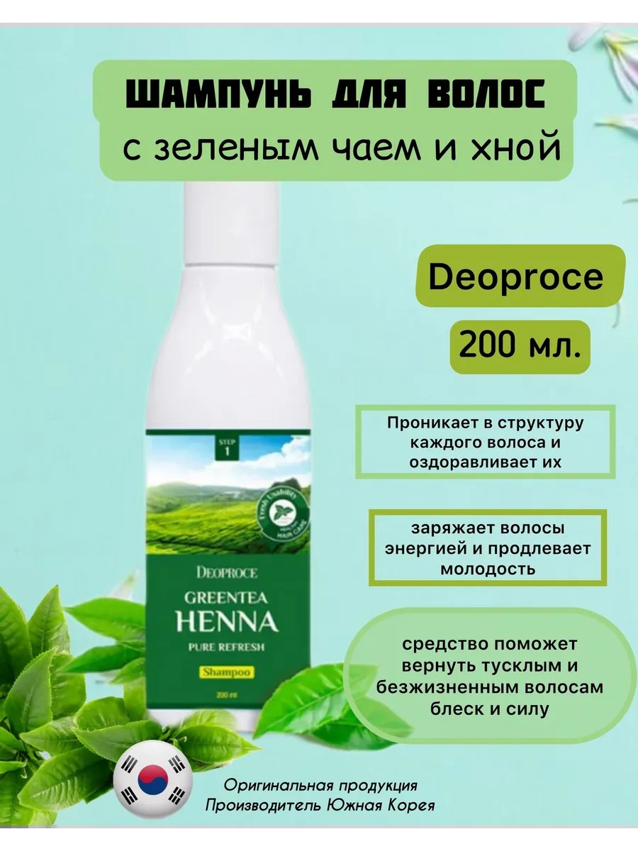DEOPROCE Шампунь для волос с экстрактом зелёного чая и хной