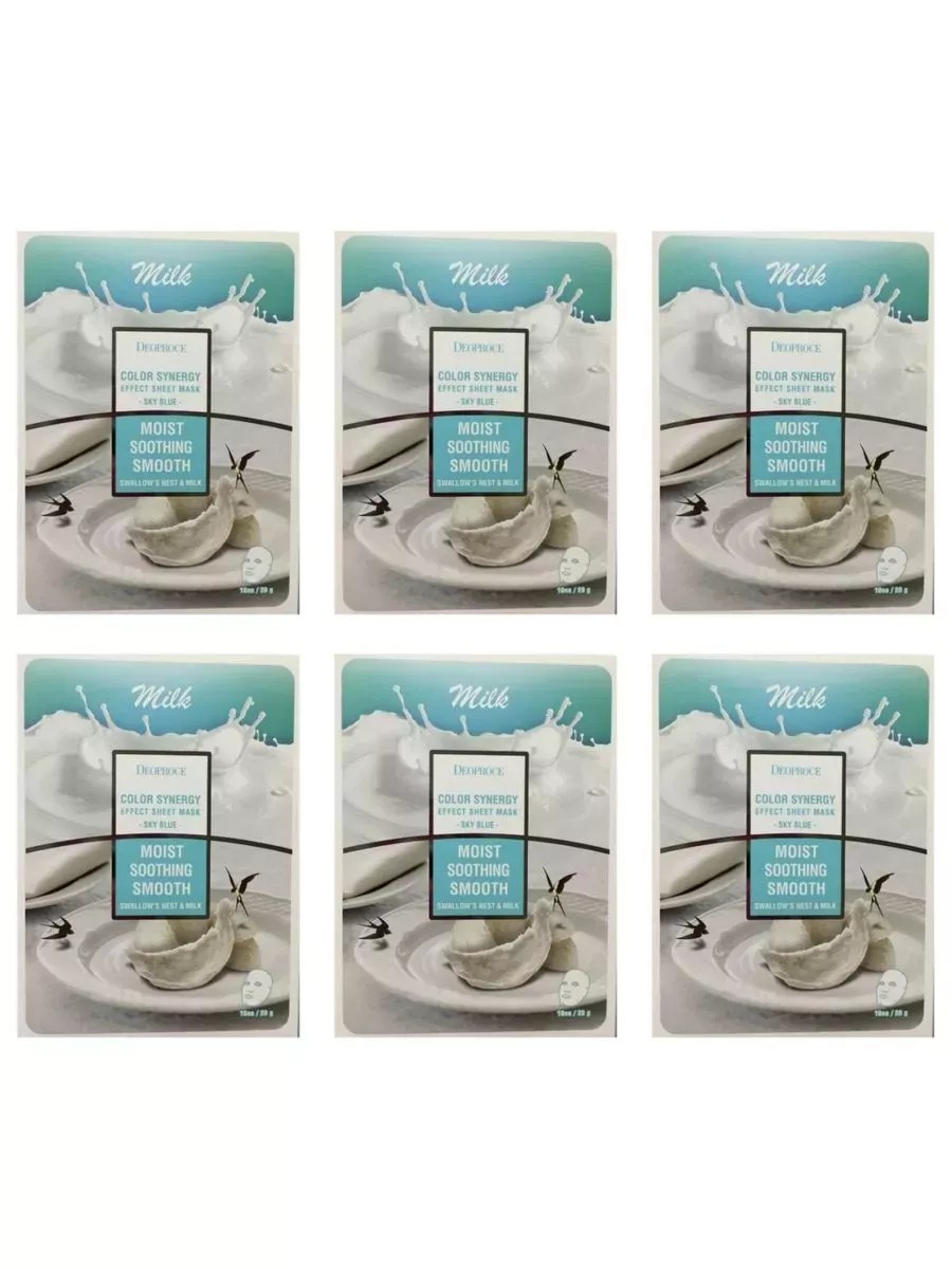 DEOPROCE COLOR SYNERGY EFFECT SHEET MASK SKY BLUE Тканевая маска для лица с экстрактом ласточкиного гнезда и молоком 20 г. Лифтинг-маска от популярного бренда Deoproce моментально оздоравливает кожу и улучшает ее внешний вид. Активными компонентами продукта, являются экстракт ласточкиного гнезда и молочные протеины. При взаимодействии, они оказывают омолаживающие, противовоспалительные и оздоровительные действия на кожу лица. Уже после первого применения маски, кожа становится нежной, гладкой, и мягкой. Морщины заметно исчезают, пигментные пятна осветляются, а тон кожи моментально выравнивается. Тканевая маска - это отличное косметическое средство для быстрого восстановления и оздоровления кожи. При регулярном применении продукта, кожа становится эластичной, шелковистой и упругой. В комплекте 6 шт.