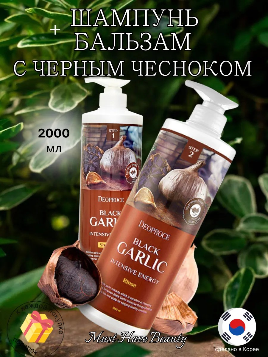 Набор шампунь + бальзам с черным чесноком подходит для всех типов волос, особенно рекомендован для сухих и ломких. Хорошо очищает кожу головы и волосы от загрязнений. Шампунь питает и увлажняет, восстанавливает поврежденные окрашиваниями и завивкой волосы, улучшает кровообращение в коже головы и жизнедеятельность волосяных луковиц, тем самым способствует укреплению волос, предупреждает их выпадение и стимулирует рост. Интенсивный смягчающий бальзам от выпадения волос Чёрный чеснок. В состав бальзама входит три основных интенсивных ингредиента: экстракт Чёрного чеснока, гидролизованный коллаген и хна, которые в совокупности способствуют активному росту, восстановлению кожи головы и волоса по всей длине, предотвращают выпадение, защищают волосы от внешних воздействий окружающей среды, придают объём и блеск волосам.
