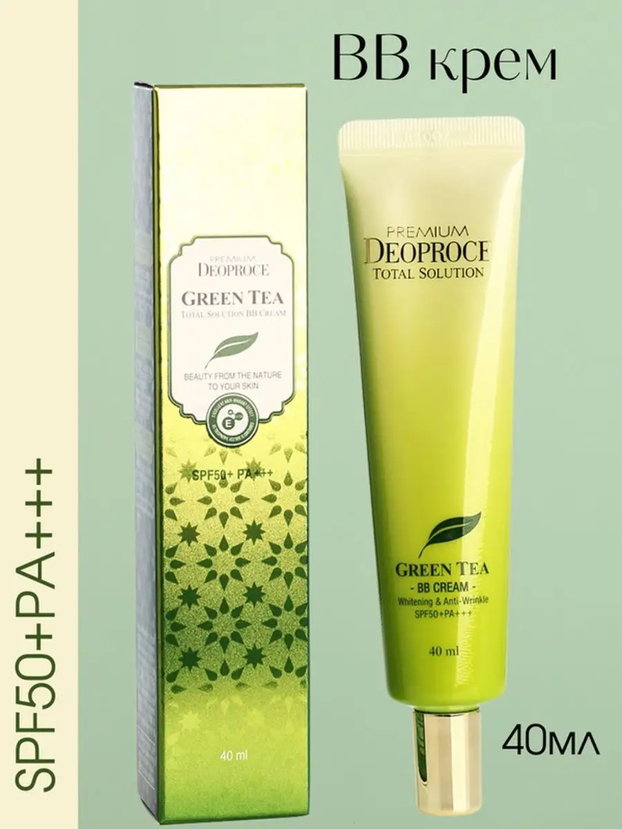Greentea Total Solution Bb Cream SPF 50+PA+++. Солнцезащитный BB крем для лица SPF 50 осветляющий антивозрастной. Линия средств Whitening & Anti-Wrinkle от DEOPROCE, созданных на основе экстракта зеленого чая, предназначена для восстанавливающего ухода за кожей лица, оздоравливает и омолаживает ее, помогает справиться с пигментацией и морщинами. Экстракт зеленого чая питает и увлажняет кожу, замедляет процессы старения, улучшает цвет лица, а также смягчает крайне неблагоприятное воздействие солнечных лучей. Экстракт портулака обладает легким противомикробным, противогрибковым и обезболивающим действием. Некоторые исследования показали, что портулак способен проявлять ботоксоподобный эффект. Аденозин снижает количество морщин, появляющихся с возрастом, уменьшает их глубину, выравнивает рельеф кожи. Диоксид титана - физический фильтр поглощает и блокирует UVB и UVA2-лучи. Не дает полной защиты от всего спектра UVA-лучей. Фотостабильный. Октилметоксициннамат - химический фильтр обеспечивает защиту кожи в достаточно широком диапазоне: этот ингредиент полностью нейтрализует излучение В типа и частично поглощает излучение коротковолновой части спектра UVA. В сочетании с физическим фильтром обеспечивает надежную защиту от фотостарения. Крем улучшает эластичность и восстанавливает защитные функции кожи. Использование крема заметно уменьшит мелкие морщинки и надолго сохранит свежесть и молодость лица. ПРИМЕНЕНИЕ: Нанести на чистую кожу, равномерно распределить, затем продолжить нанесение макияжа.