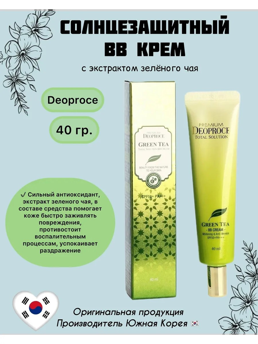 Deoproce Greentea Total Solution Bb Cream Spf50+Pa+++ - Солнцезащитный BB крем для осветления с антивозрастным эффектом.