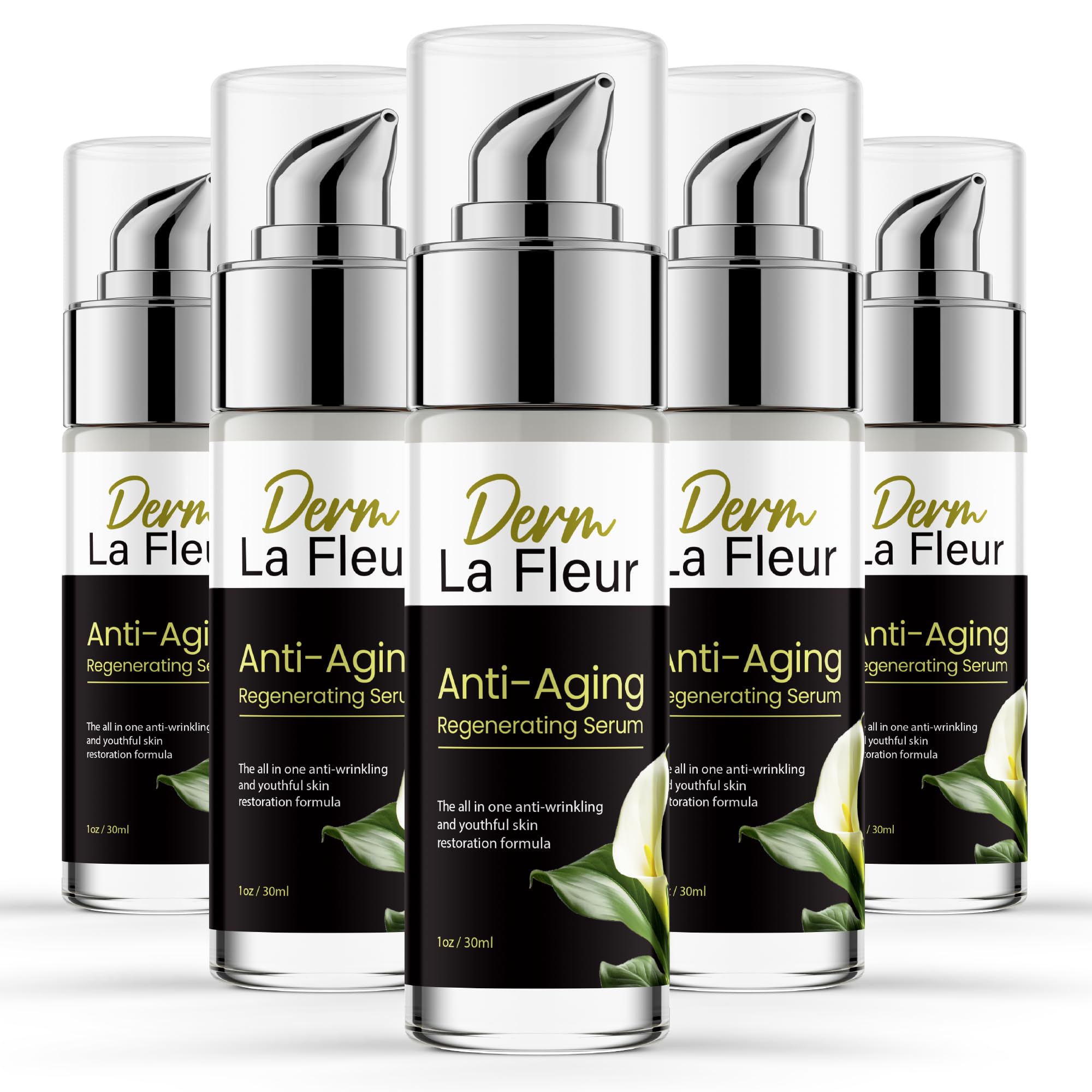 Derm Le Veux Anti Aging Serum Derm Le Veux Deluxe Skin Care Anti-Aging Skin Serum Dermleveux Serum Advanced Formula Maximum Strength Moisturizing Serum New 2024 Max Performance Blend (5 Bottles)