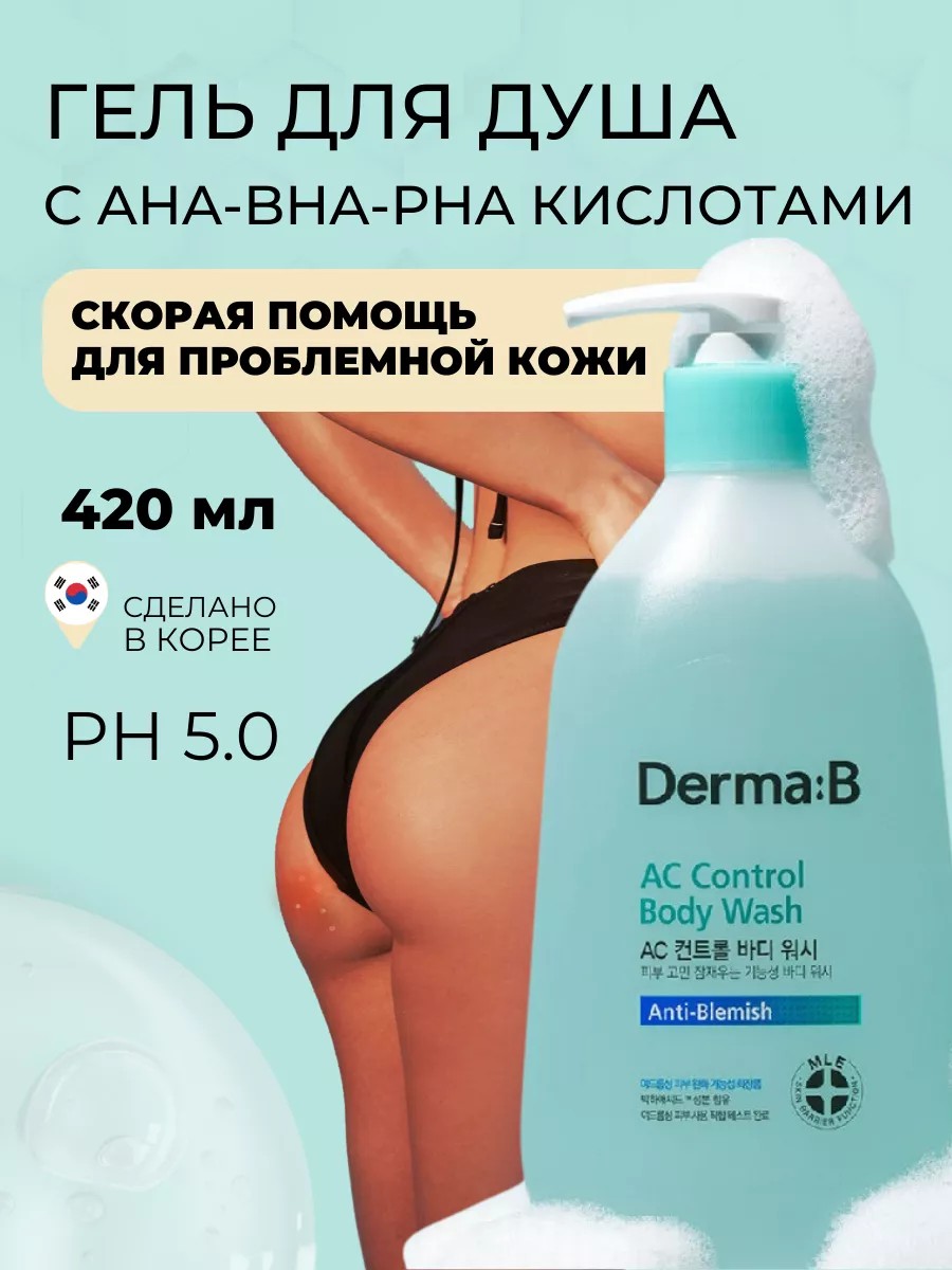 Derma:B Увлажняющий гель для душа от прыщей с кислотами