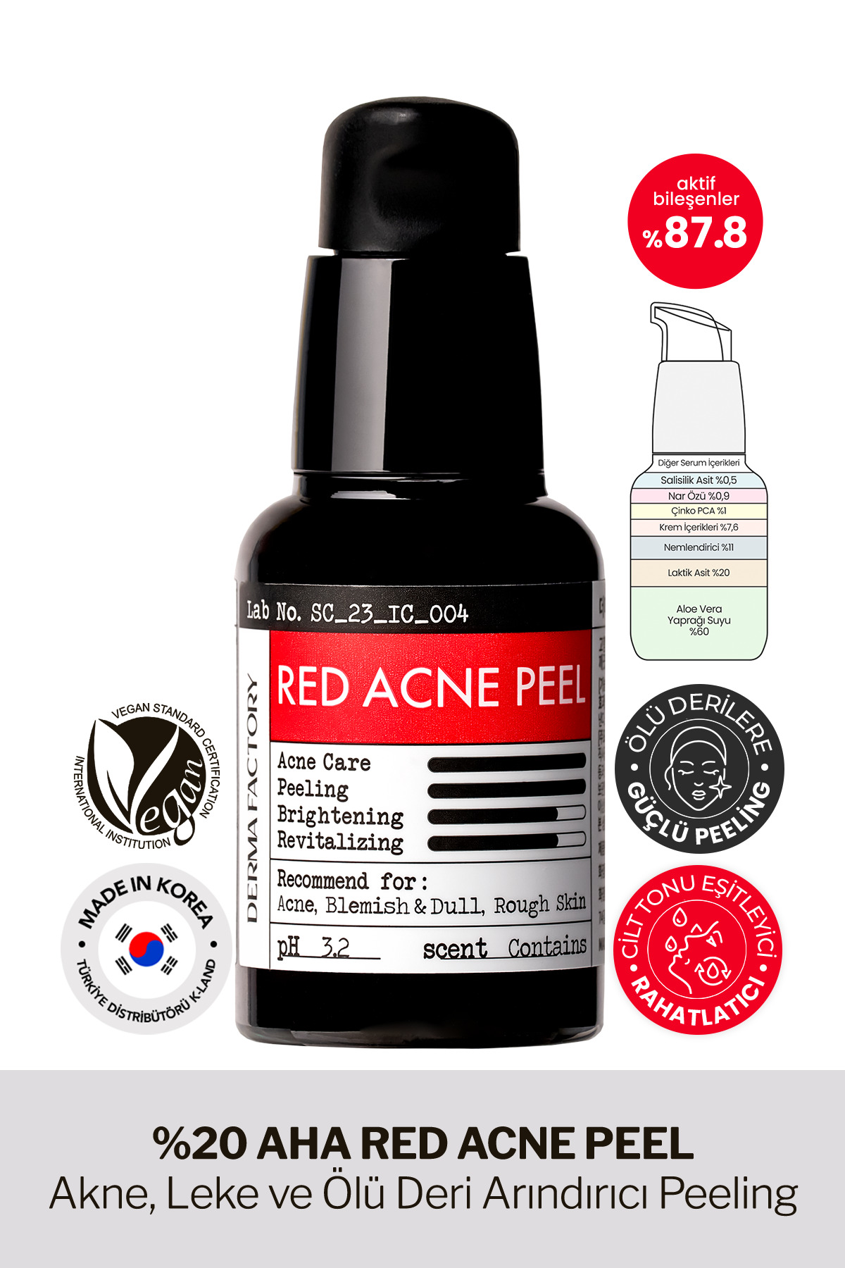 DERMA FACTORY AHA Peeling Serum Wash Form Acne Stain and Purifying Derma Factory Red Acne Peel 30 ml