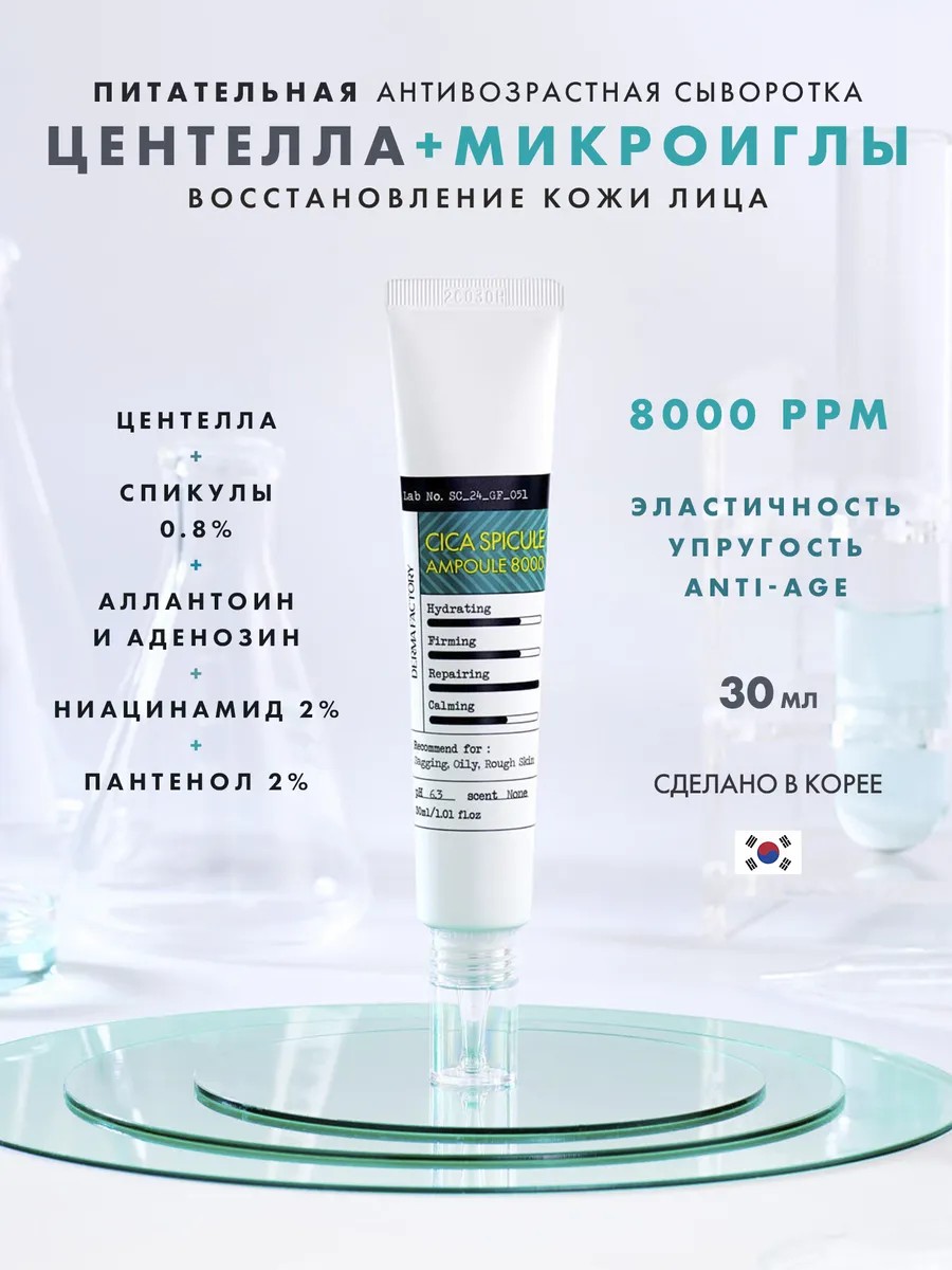DERMA FACTORY Сыворотка для лица c микроиглами и центеллой 8000 ppm