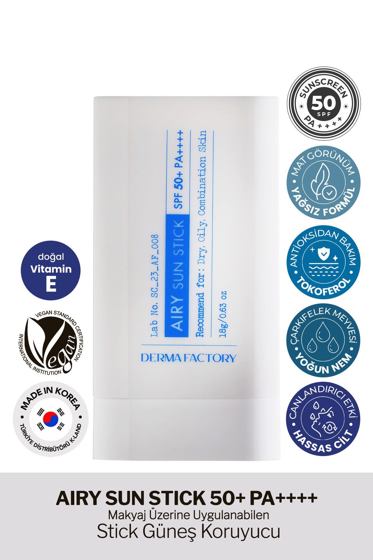 DERMA FACTORY Matte Stick Sunscreen for Oily and Combination Skin Derma Factory Airy Sun Stick SPF 50+ PA++++