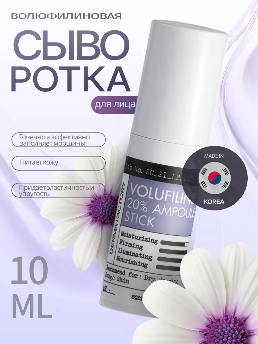 Стик Сыворотка для упругости лица с Волюфилином от Derma factory – это инновационный продукт, разработанный для поддержания молодости и тонуса вашей кожи. Корейская сыворотка от морщин для эластичности от корейского бренда Дерма Фактори содержит Волюфилин (Volufiline), активный компонент сыворотки, известен своими уникальными свойствами, способствующими восстановлению упругости и эластичности кожи. Используйте омолаживающий стик для разглаживания колец Венеры на шее, морщин носогубной складки, разглаживании мимических морщин вокруг глаз и других мест, с пониженной эластичностью и тонусом. Легкая текстура сыворотки быстро впитывается, не оставляя липкости, и дарит коже ощущение комфорта. Регулярное применение сыворотки поможет вам сохранить естественную красоту и свежесть кожи, делая ее более подтянутой и сияющей. Антивозрастной стик сыворотка с Волуфилином окажет глубокое питательное и увлажняющее действие и поможет справится с дряблостью именно там, где это особенно необходимо. В нашем магазине Avrora, Вы можете приобрести это и другие оригинальные средства от корейских ведущих брендов.