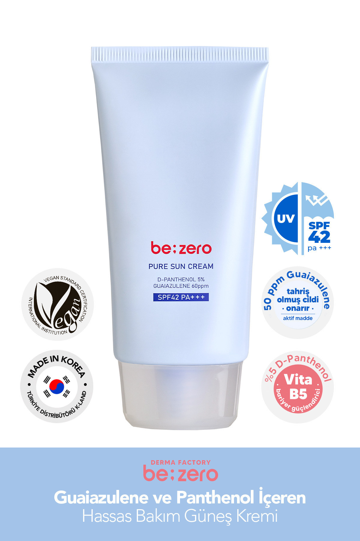 DERMA FACTORY Sun Cream with Azulene and Panthenol for Sensitive Skin Derma Factory Be Zero Pure Sun Cream 80GR