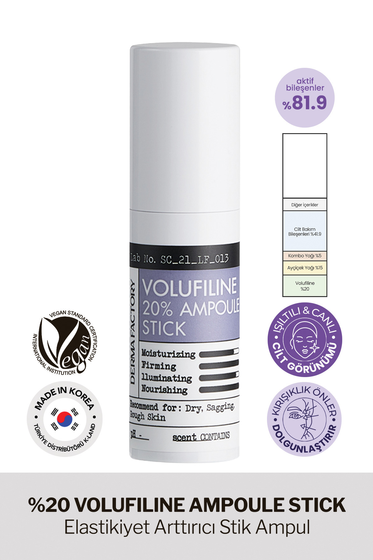 • Stick Ampul cildin sikiligini ve parlakligini artirmak için tasarlanmis yüksek konsantrasyonlu bir cilt bakim ürünüdür ve elastikiyeti artirmak ve isiltili bir cilt saglamak için önemli miktarda Volufiline içerir.
