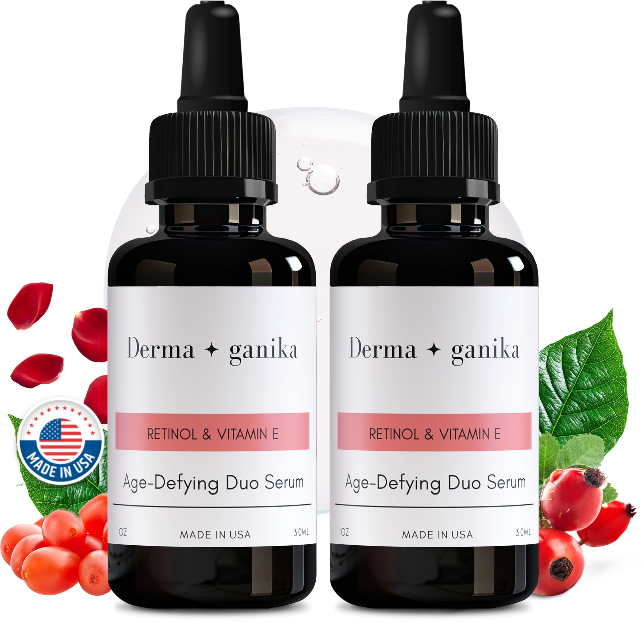 Derma ganika Retinol & Vitamin E Serum for Face - Made in USA Collagen-Boosting Anti-Aging Serum | Reduces Fine Lines Wrinkles & Hyperpigmentation | Smooths & Hydrates Skin (Pack of 2) 1 Fl Oz (Pack of 2)