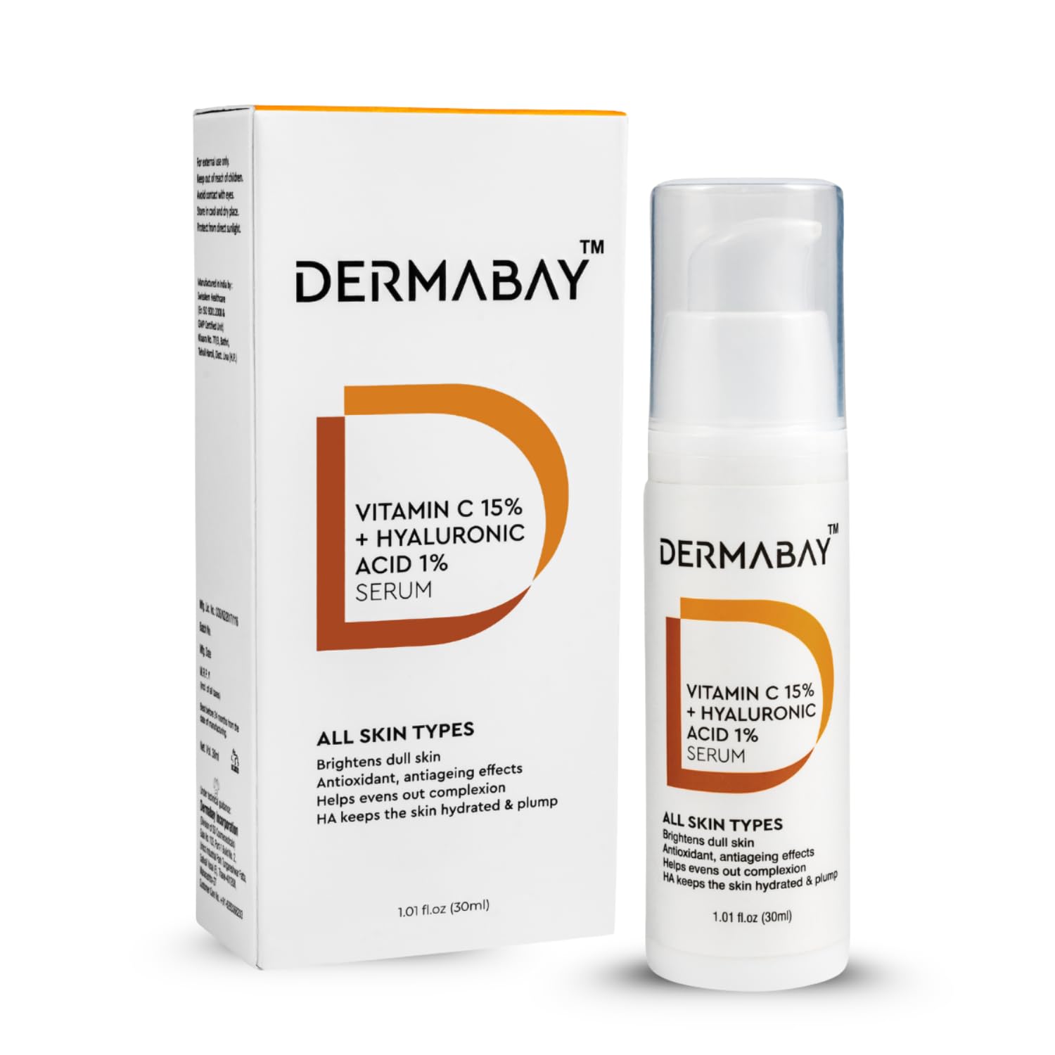 Dermabay Vitamin C 15% + Hyaluronic Acid 1% Serum - Ultimate Skincare Blend Formula for Radiant Glow - Brightening Vit C For Men and Women - 30 ML