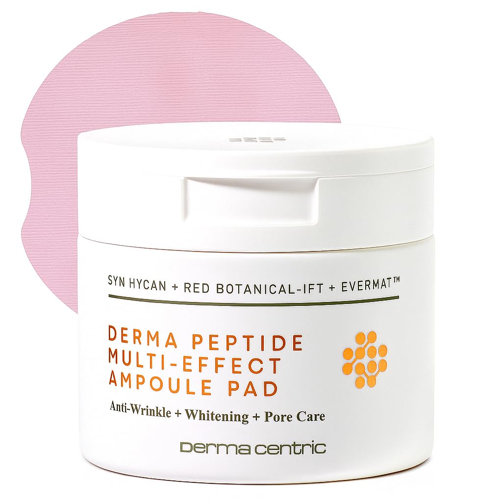 DERMACENTRIC Peptide Multi-Effect Ampoule Toner Cotton Pads Korean Skincare Vegan Hydrating & Firming Pore Minimizer & Exfoliator w/Ampoule Essence Toner (70 Sheets)