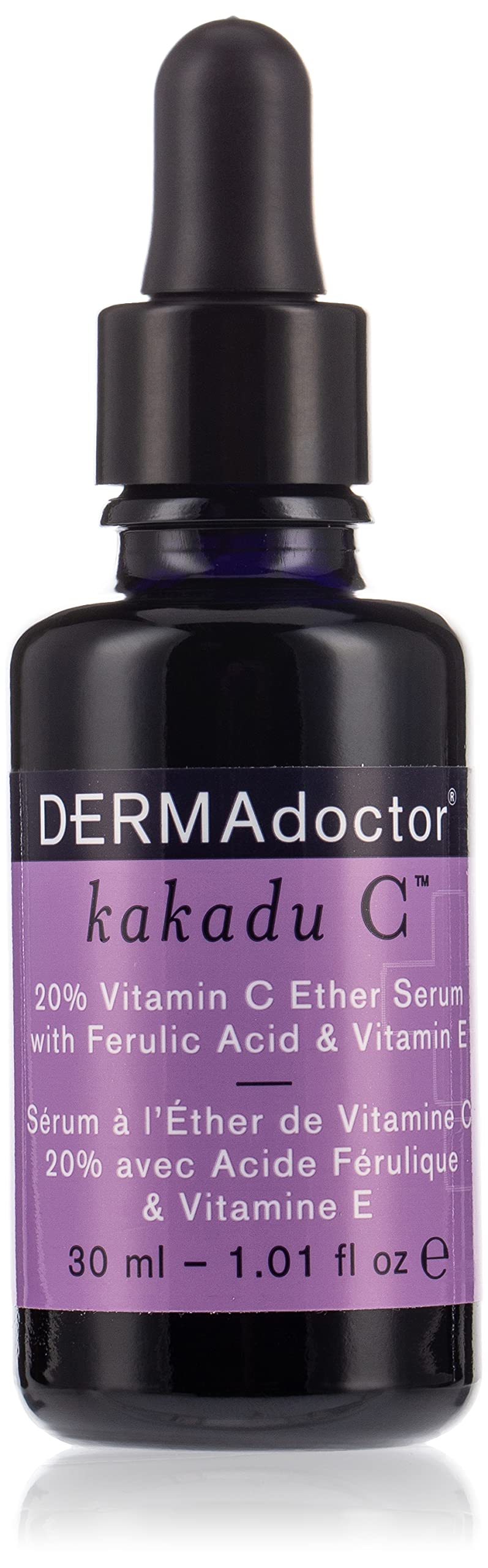 DERMAdoctor Cacadu C Serum 20 Vitamin C with Ferulic Acid and Vitamin E 30ml. An essential daily antioxidant treatment, DERMAdoctor Cacadu C Serum 20 Vitamin C with Ferulic Acid and Vitamin E is carefully formulated to give you brighter, smoother, softer, and firmer skin. With a cocktail of the best free radical fighters, this anti-aging treatment restores elasticity and diminishes the appearance of fine lines and wrinkles, while preventing future damage. The bottle provides approximately 150 applications when used as directed. A lightweight, high-potency serum that delivers a concentrated 20 stabilized vitamin C anti-aging boost enriched with cacadu plum, ferulic acid, and vitamin E. Treat your skin to one of the richest natural sources of vitamin C known on earth. This luxurious, lightweight serum helps brighten and leaves skin feeling more elastic, smoother, softer, and firmer. It helps improve the appearance of wrinkles and fine lines, while the powerful antioxidant, vitamin C, helps protect the skin from environmental aggressions by fighting damage caused by free radicals.Restores elasticity and diminishes the appearance of fine lines and wrinkles. Anti-aging concentrate. Lightweight serum. Treat your skin to one of the richest natural sources of vitamin C known on earth. Formulated for brighter, smoother, softer, and firmer skin.DERMAdoctor Kakadu 20282-7 Sérum à la vitamine C avec acide férulique et vitamine E, 30 mlDESCRIPTION DU PRODUIT DERMAdoctor Sérum Cacadu C 20 vitamine C avec acide férulique et vitamine E 30 ml. Un traitement antioxydant quotidien essentiel, le sérum DERMAdoctor Cacadu C 20 vitamine C avec acide férulique et vitamine E est soigneusement formulé pour vous donner une peau plus lumineuse, plus lisse, plus douce et plus ferme. Avec un cocktail des meilleurs combattants des radicaux libres, ce traitement anti-âge restaure l'élasticité et diminue l'apparence des rides et ridules, tout en empêchant les dommages futurs. La bouteille offre environ 150 applications lorsqu'elle est utilisée comme indiqué. Un sérum léger à haute puissance qui fournit un concentré anti-âge de 20 de vitamine C stabilisée enrichi en prune de cacadu, acide férulique et vitamine E. Faites plaisir à votre peau avec l'une des sources naturelles de vitamine C les plus riches connues sur terre. Ce sérum luxueux et léger aide à éclaircir et à laisser la peau plus élastique, plus lisse, plus douce et plus ferme. Il aide à améliorer l'apparence des rides et ridules tandis que le puissant antioxydant, la vitamine C, aide à protéger la peau des agressions environnementales en combattant les dommages causés par les radicaux libres.Restaure l'élasticité et diminue l'apparence des rides et ridules. Concentré anti-âge. Sérum léger. Faites plaisir à votre peau avec l'une des sources naturelles de vitamine C les plus riches connues sur terre. Formulé pour une peau plus lumineuse, plus lisse, plus douce et plus ferme.