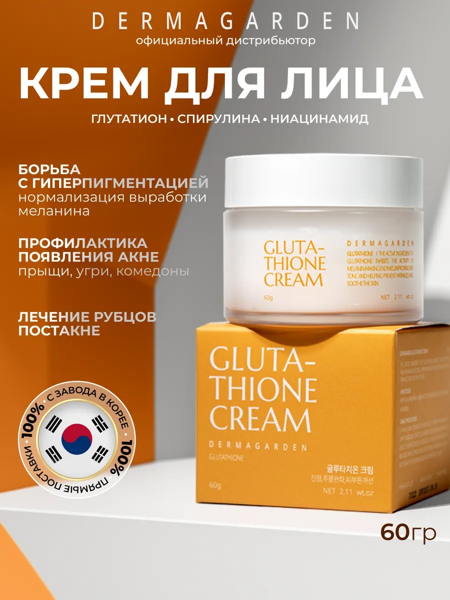 Уникальный отбеливающий крем для лица — DERMAGARDEN GLUTATHIONE CREAM 60g — с глутатионом, спирулиной, ниацинамидом и витамином С — настоящая находка для тех, кто ценит корейскую косметику для лица! Этот крем привнесет в Вашу рутину ухода приятные перемены, которые не оставят равнодушными даже самых требовательных ценителей корейского качества.