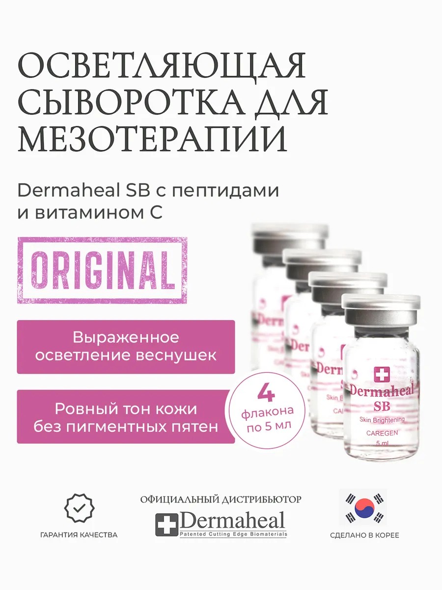 Осветление и выравнивание тона – важный этап в уходе за лицом не только для женщин, но и для мужчин. Премиальная осветляющая косметика создает не только визуальный эффект, но и оздоравливает кожу изнутри, подавляя синтез меланина. Мезококтейль SB от космецевтической компании Dermaheal (Корея) является профессиональным средством от пигментации. Сыворотка с витамином C, арбутином, экстрактом корня солодки и пептидами выравнивает цвет лица, придает сияние коже и освежает ее. Средство эффективно справляется с пигментными пятнами после загара, веснушками и другими проявлениями избытка меланина, обеспечивает антиоксидантный эффект и стимулирует выработку коллагена. Сыворотка для мезотерапии с кислотами подойдет женщинам и мужчинам с любым типом кожи. Областями применения могут быть лицо, шея, зона декольте, руки, плечи или другой проблемный участок на теле. Пигментации могут быть подвергнуты жирная, сухая, зрелая, чувствительная. Состав сыворотки подходит для всех типов кожи и направлен на выравнивание ее цвета. После вскрытия флакон хранить в холодильнике не более 14 дней.