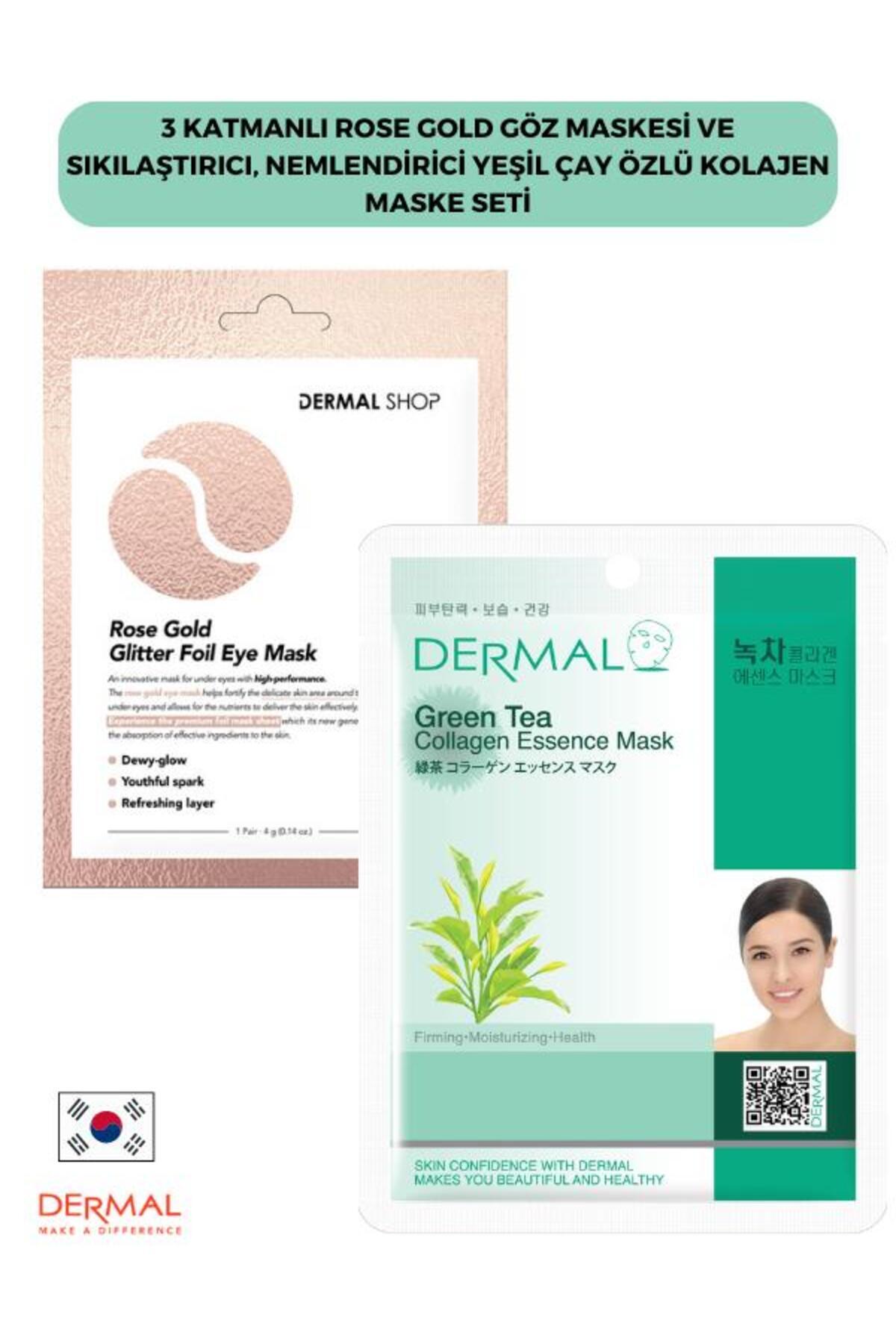 Dermal 3 Katmanli Rose Göz Maskesi ve Sikilastici Nemlendirici Yesil Çay Özlü Kolajen Maske Seti