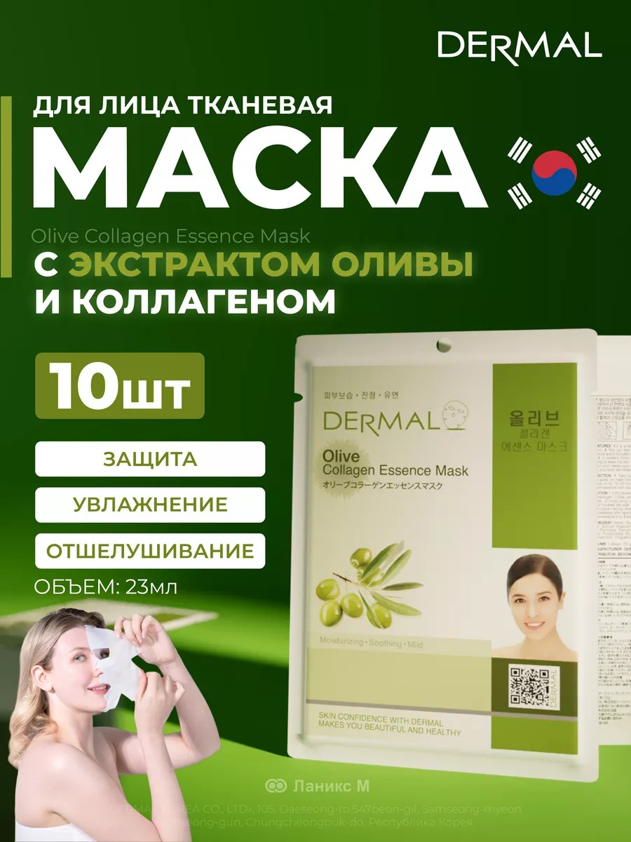 Dermal Маска для лица с экстрактом оливы и коллагеном Набор 10шт