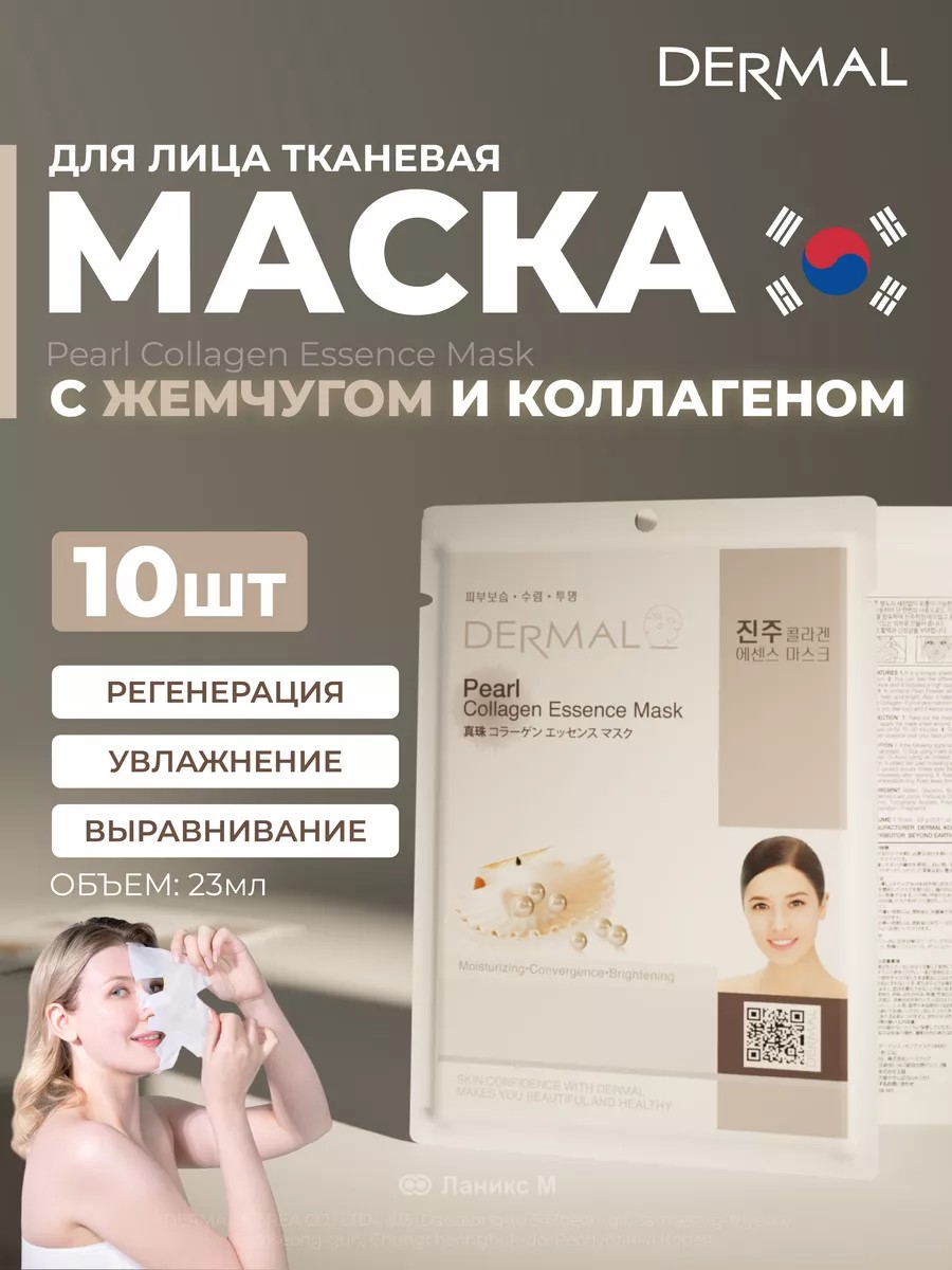 Dermal Маска для лица с жемчугом и коллагеном Набор 10шт