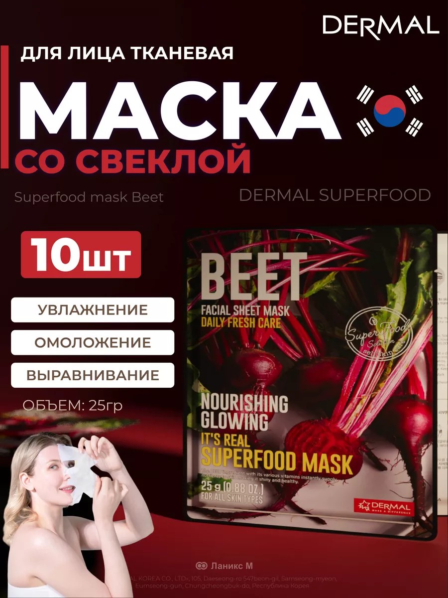 Dermal Маски для лица со свеклой Superfood Набор 10шт